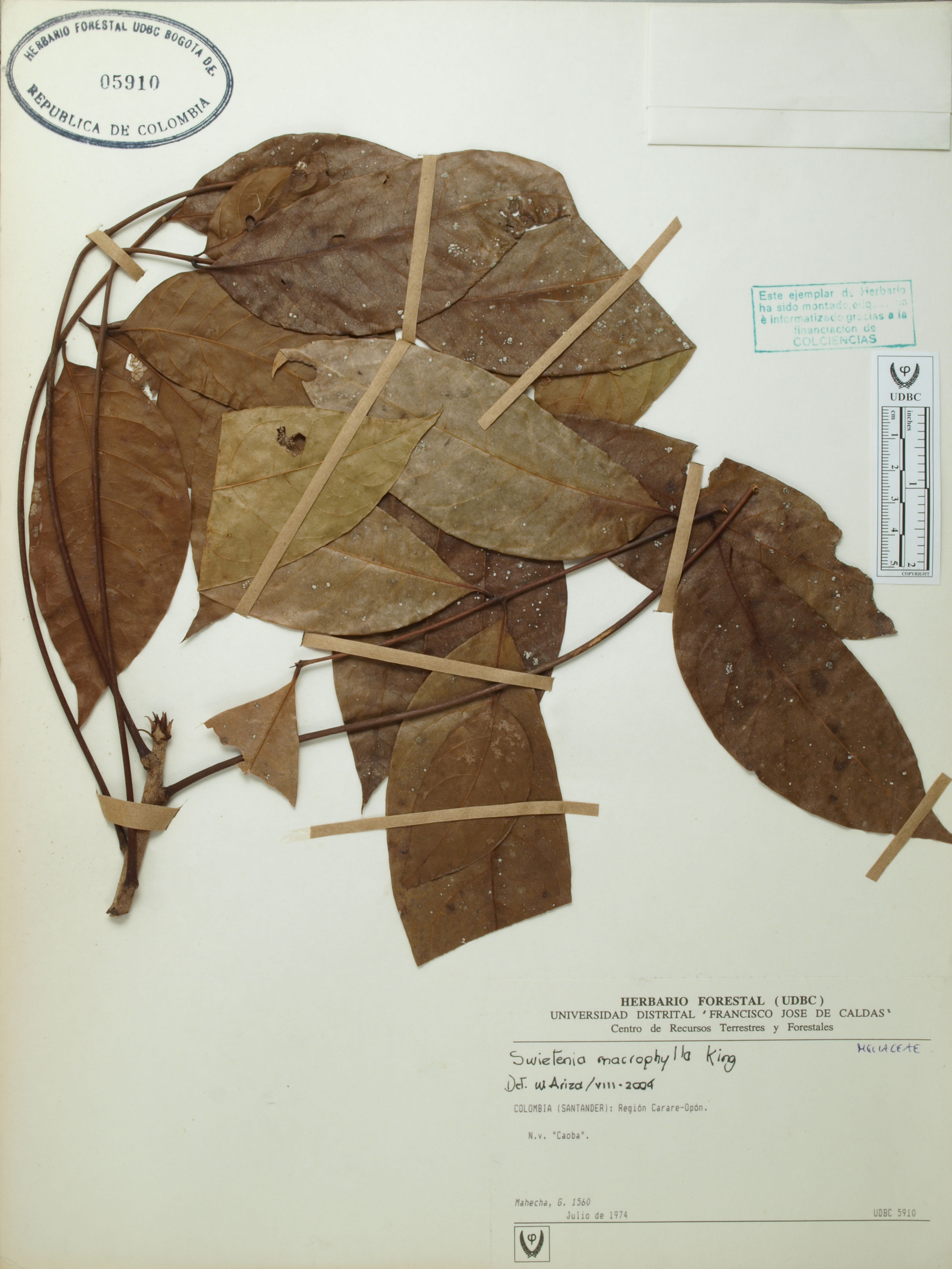 Fotografía del ejemplar Mahecha, G. 1560, determinado como Swietenia macrophylla