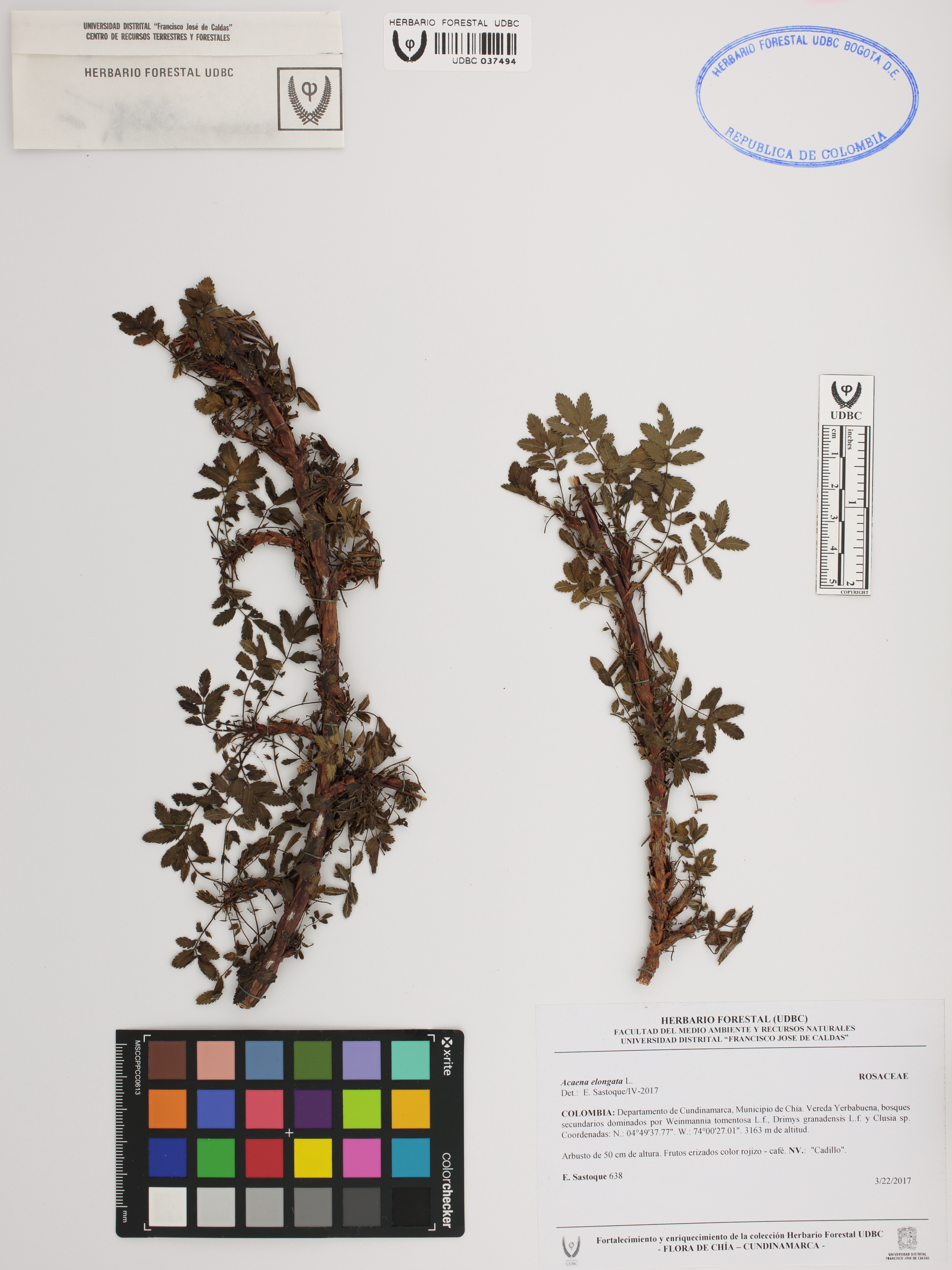 Fotografía del ejemplar Sastoque, E. 638, determinado como Acaena elongata en el año 2017
