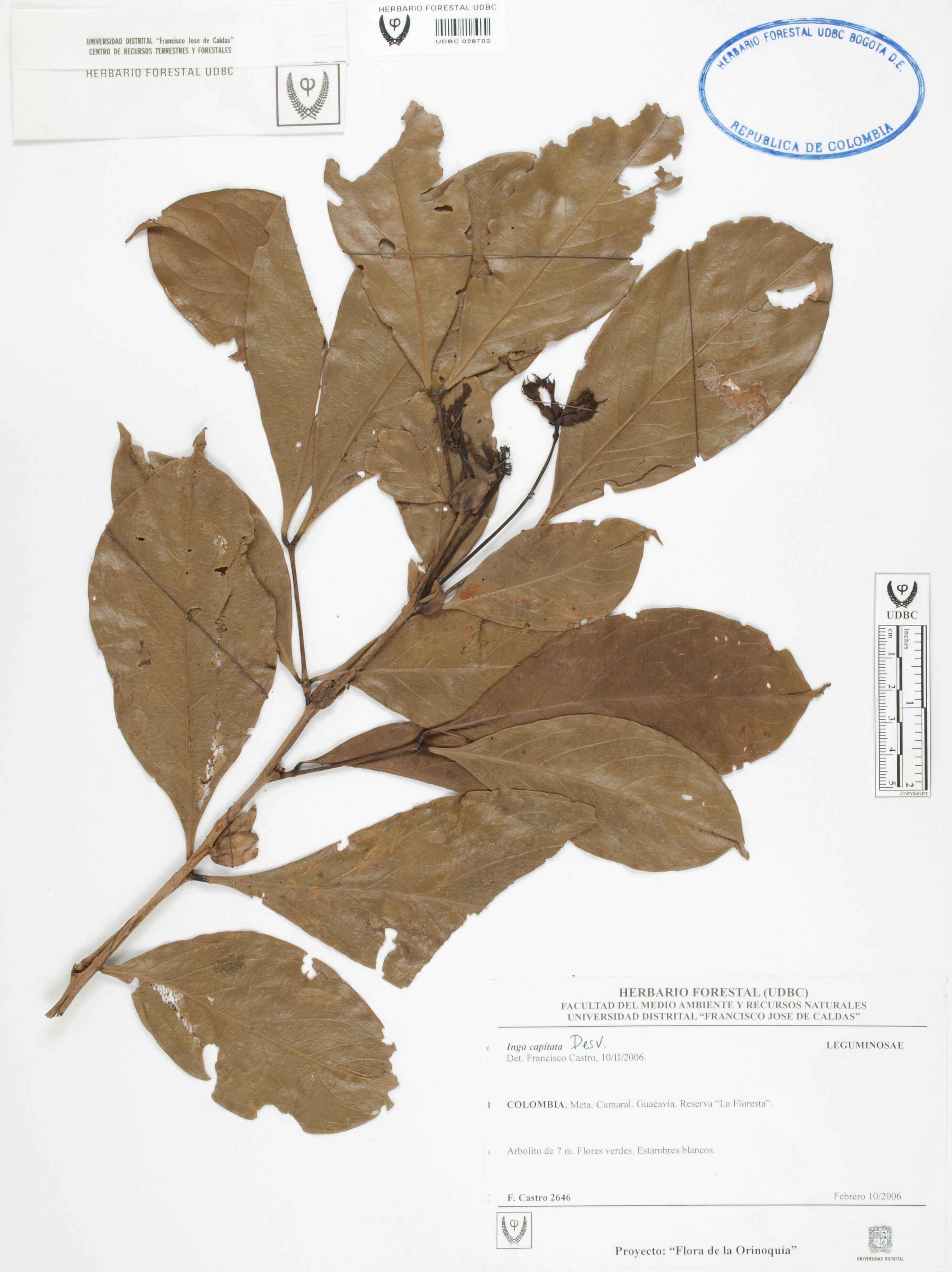 | dc.description | Fotografía del ejemplar Castro, F. 2646, determinado como Inga capitata en el año 2006 | |