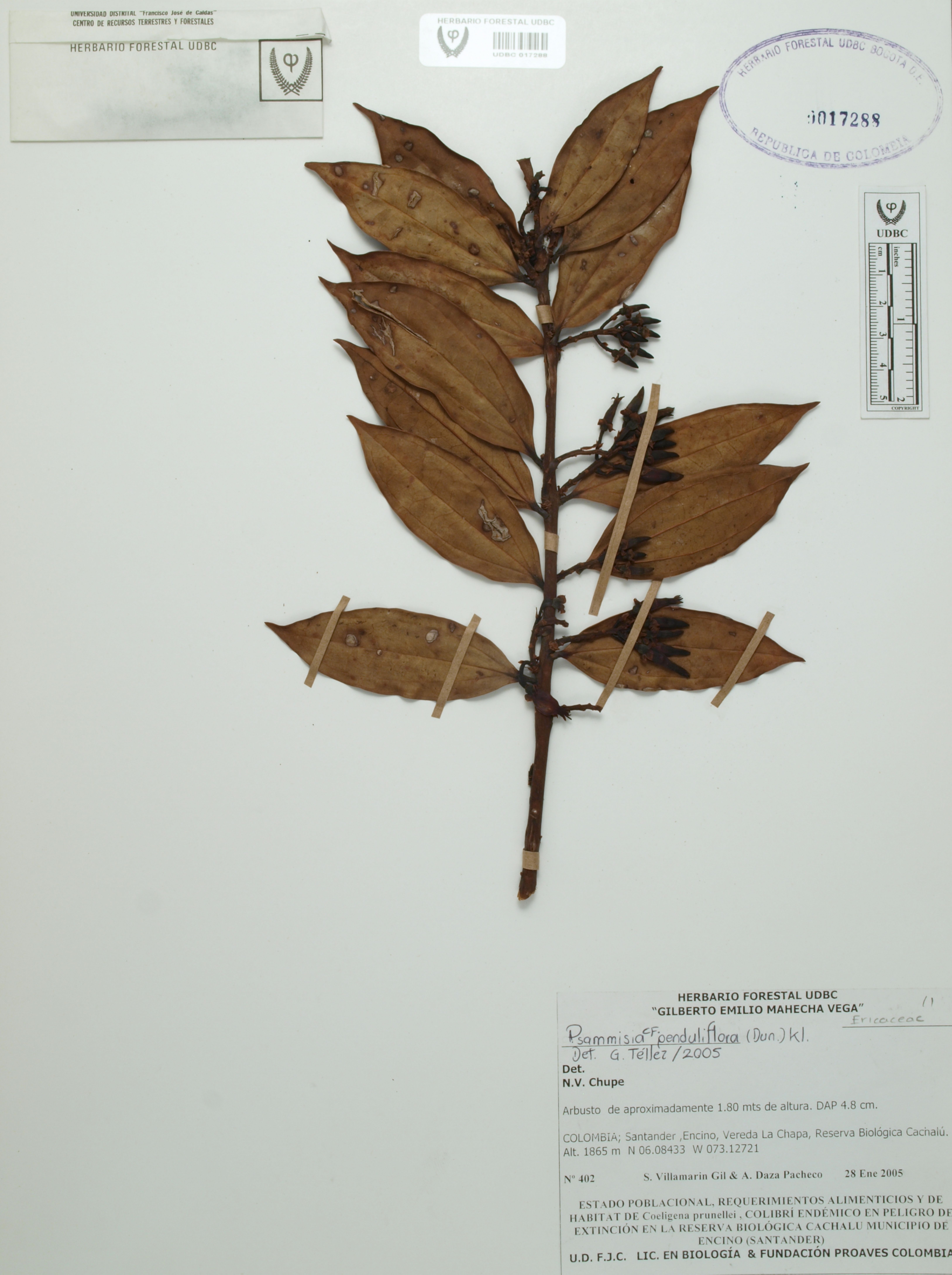 Fotografía del ejemplar Villamarín, S. 402, determinado como Psammisia penduliflora en el año 2005