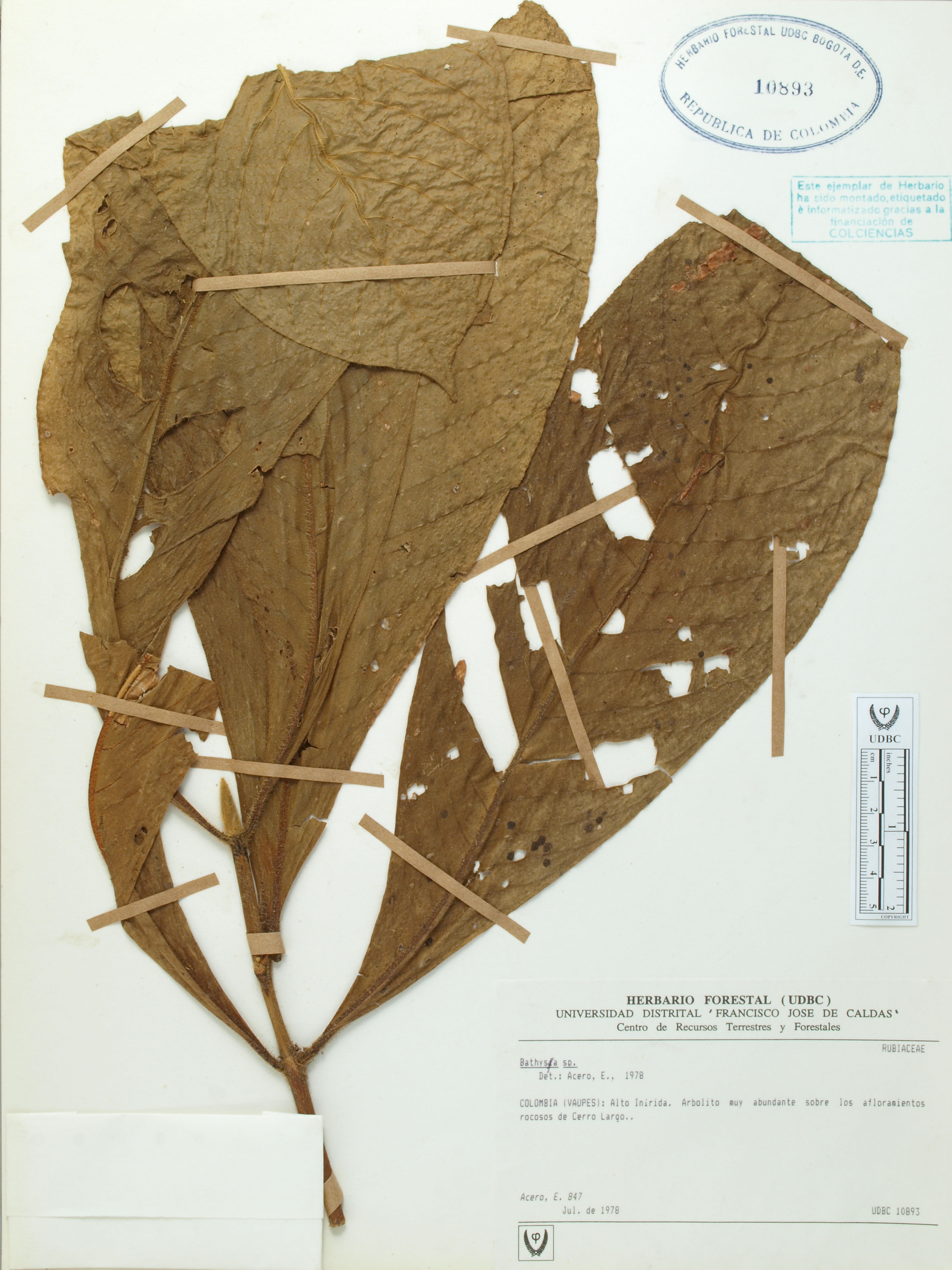 Fotografía del ejemplar Acero, E. 847, determinado como Bathysa sp. en el año 1978