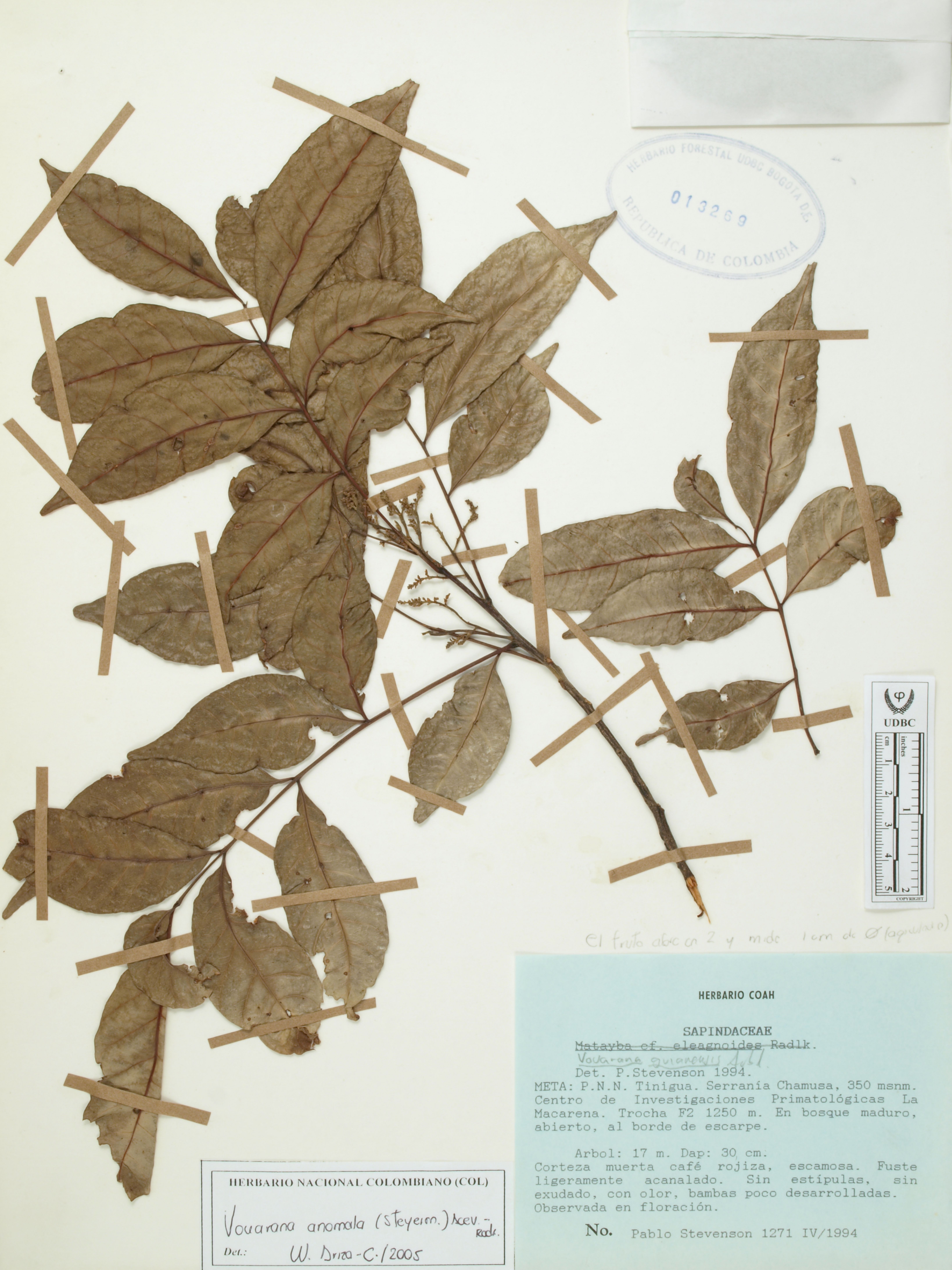 Fotografía del ejemplar Stevenson, P. 1271, determinado como Vouarana anomala en el año 2005