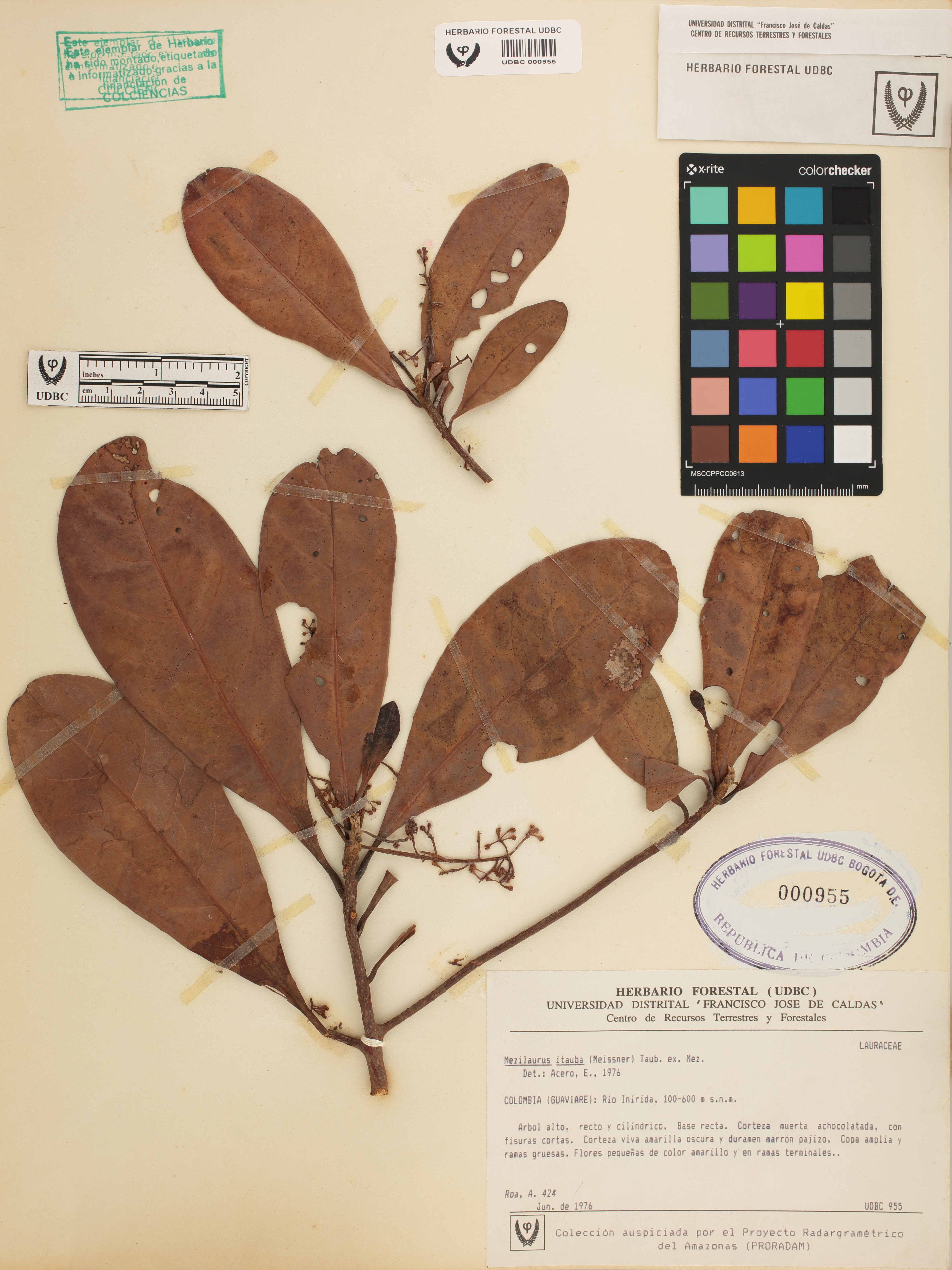 Fotografía del ejemplar Roa, A. 424, determinado como Mezilaurus itauba en el año 1976