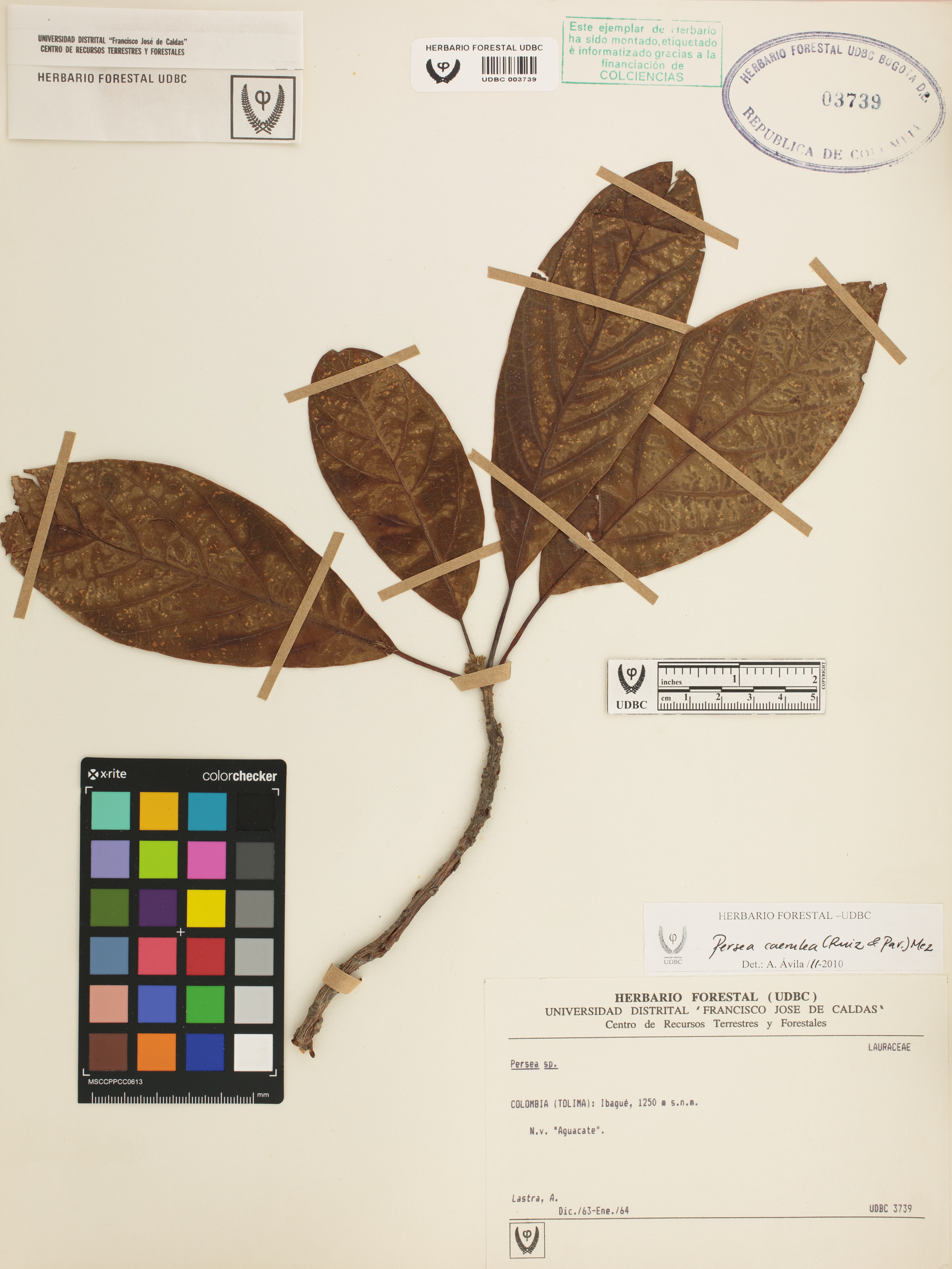 Fotografía del ejemplar Lastra, A., determinado como Persea caerulea en el año 2010
