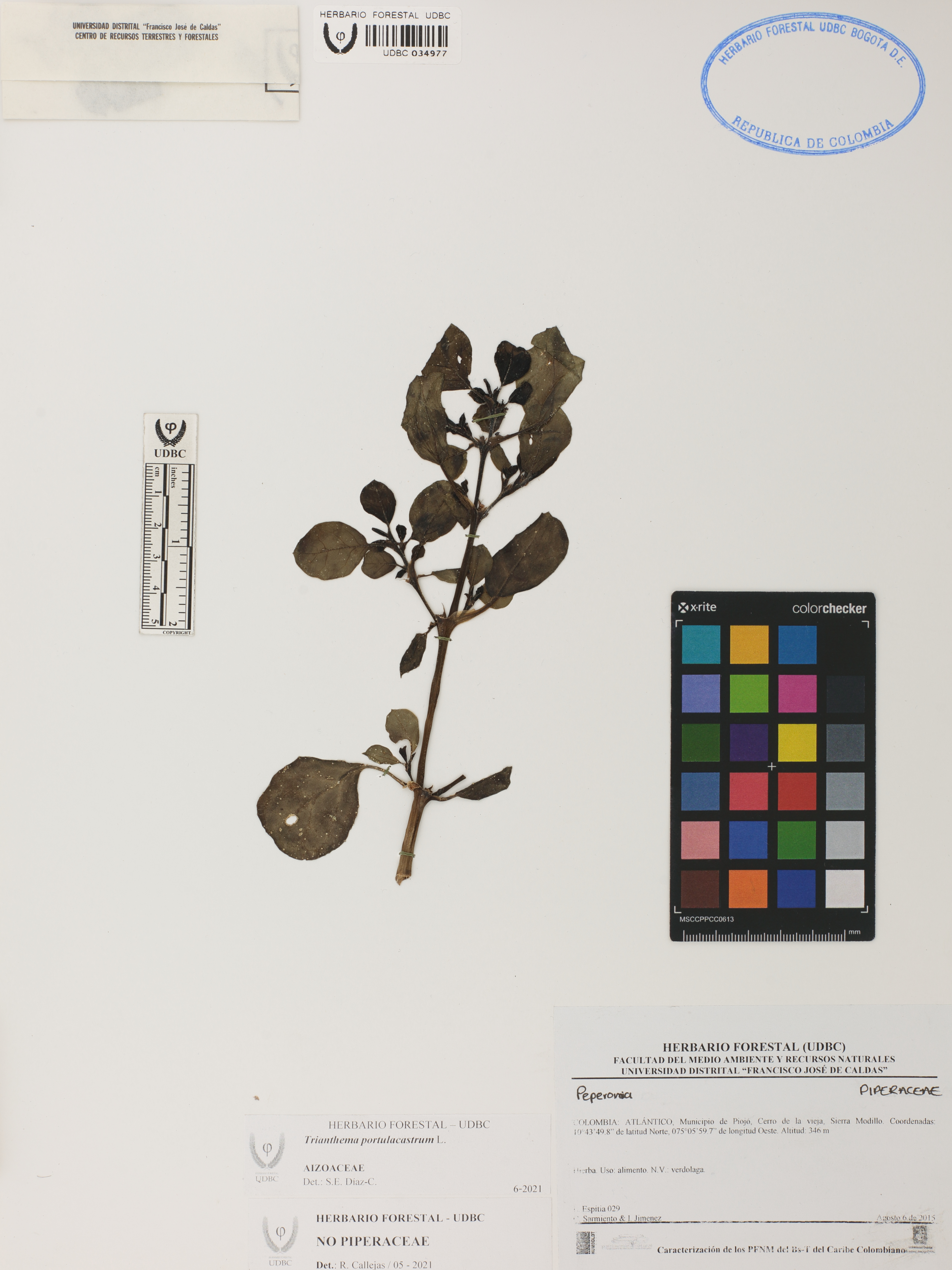 Fotografía del ejemplar Espitia, L. 29, determinado como Trianthema portulacastrum en el año 2021