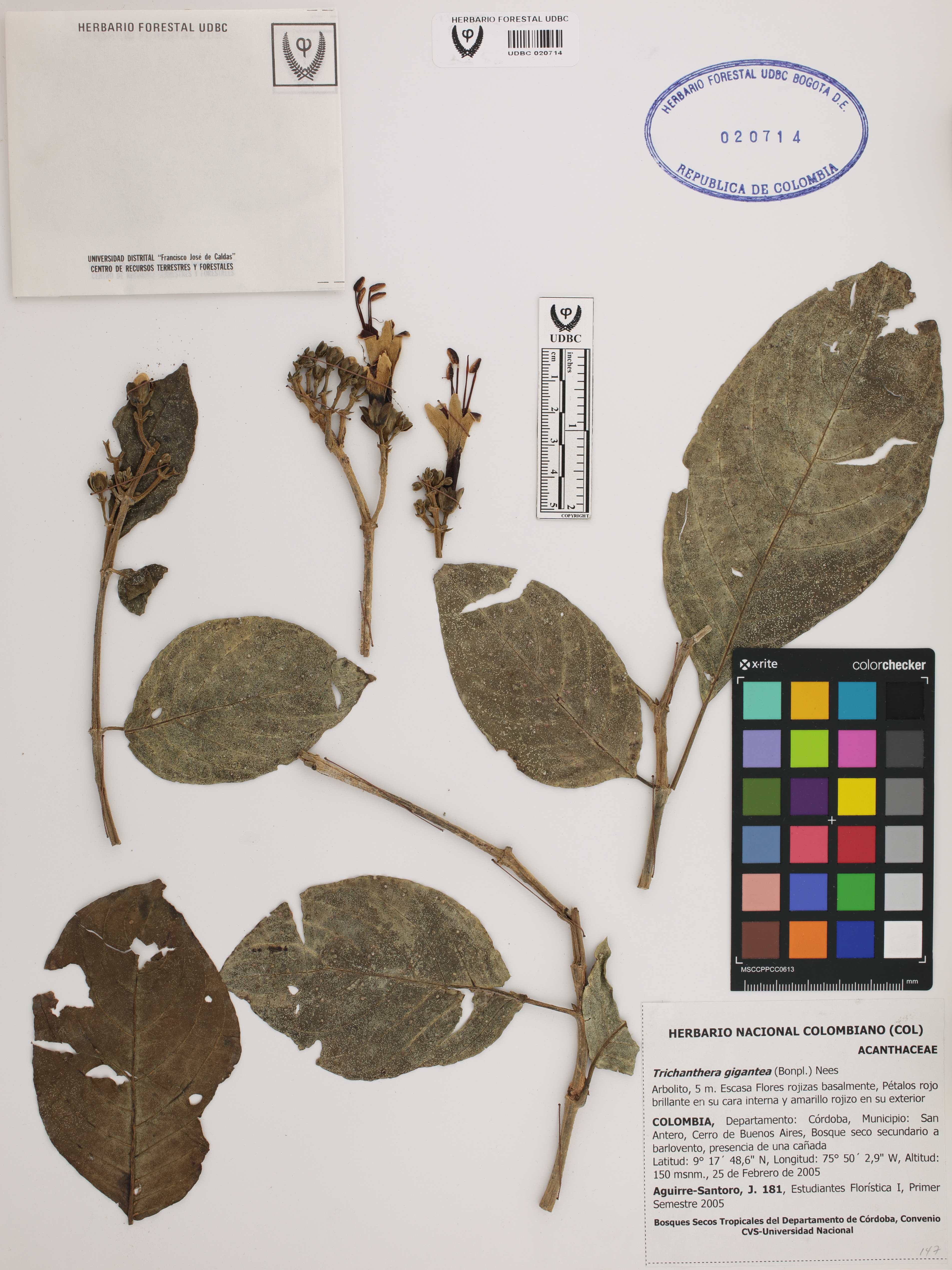 Fotografía del ejemplar Aguirre-S., J. 181, determinado como Trichanthera gigantea