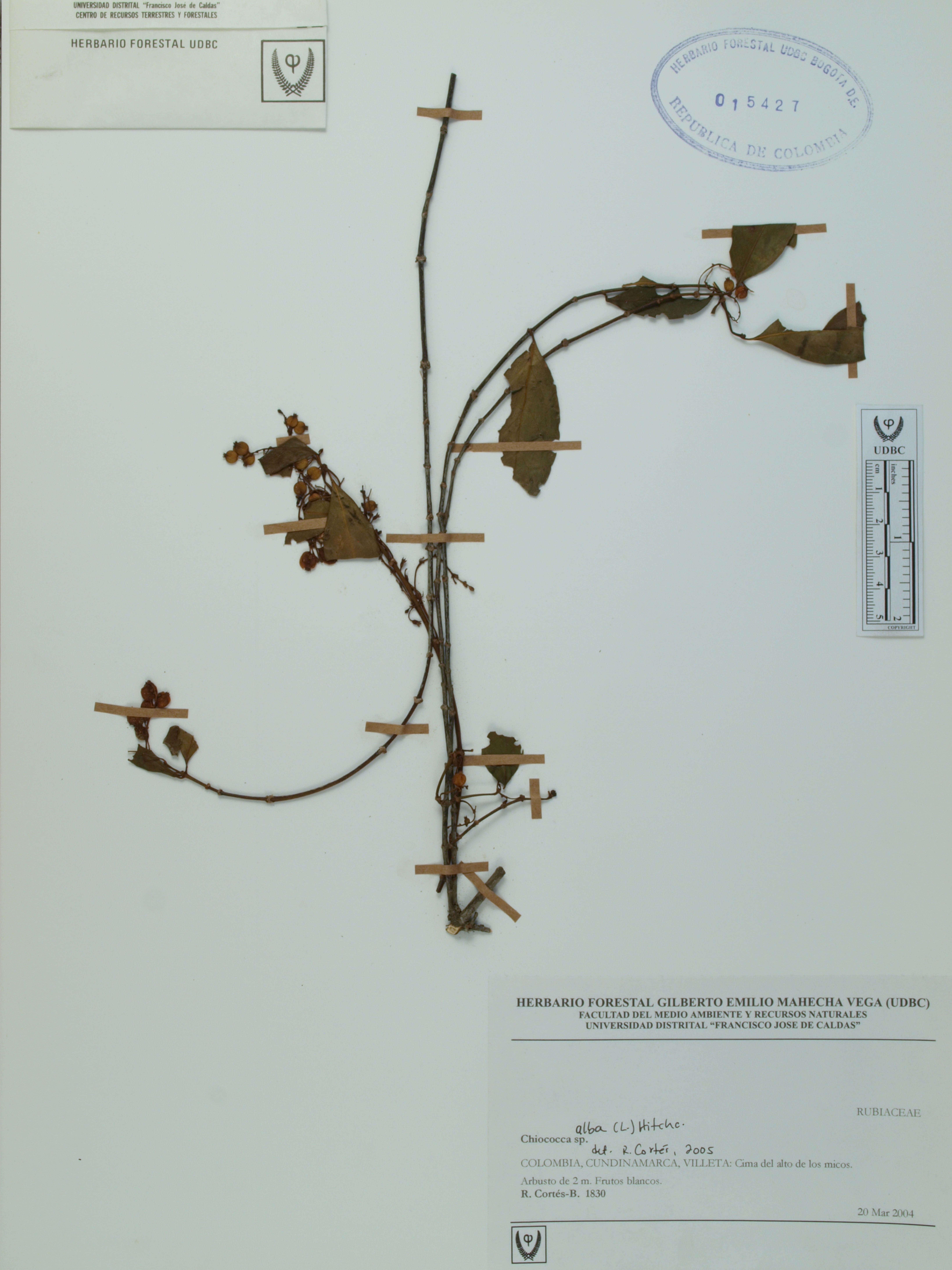 Fotografía del ejemplar Cortés-B., R. 1830, determinado como Chiococca alba