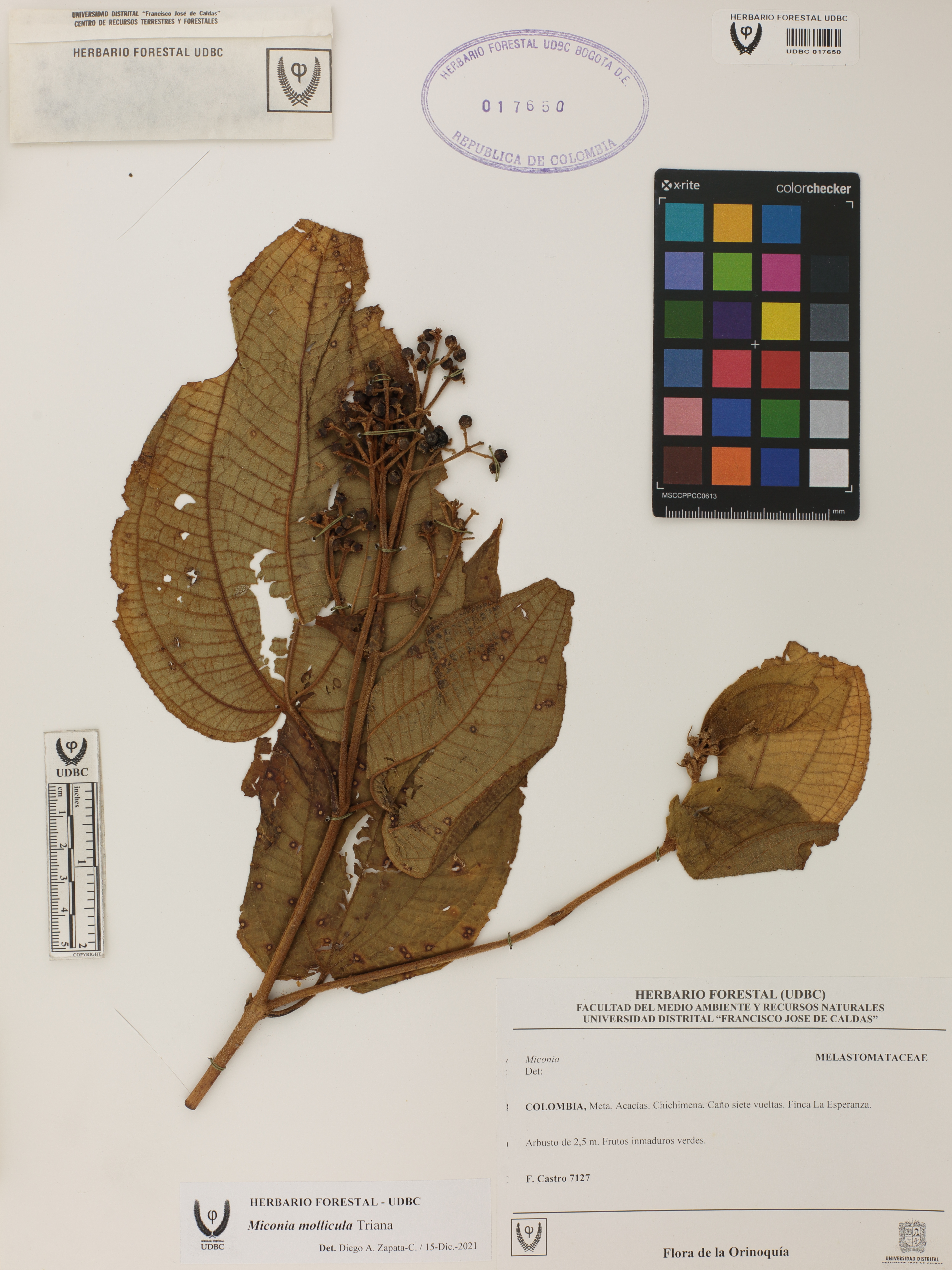 Fotografía del ejemplar Castro, F. 7127, determinado como Miconia mollicula en el año 2021