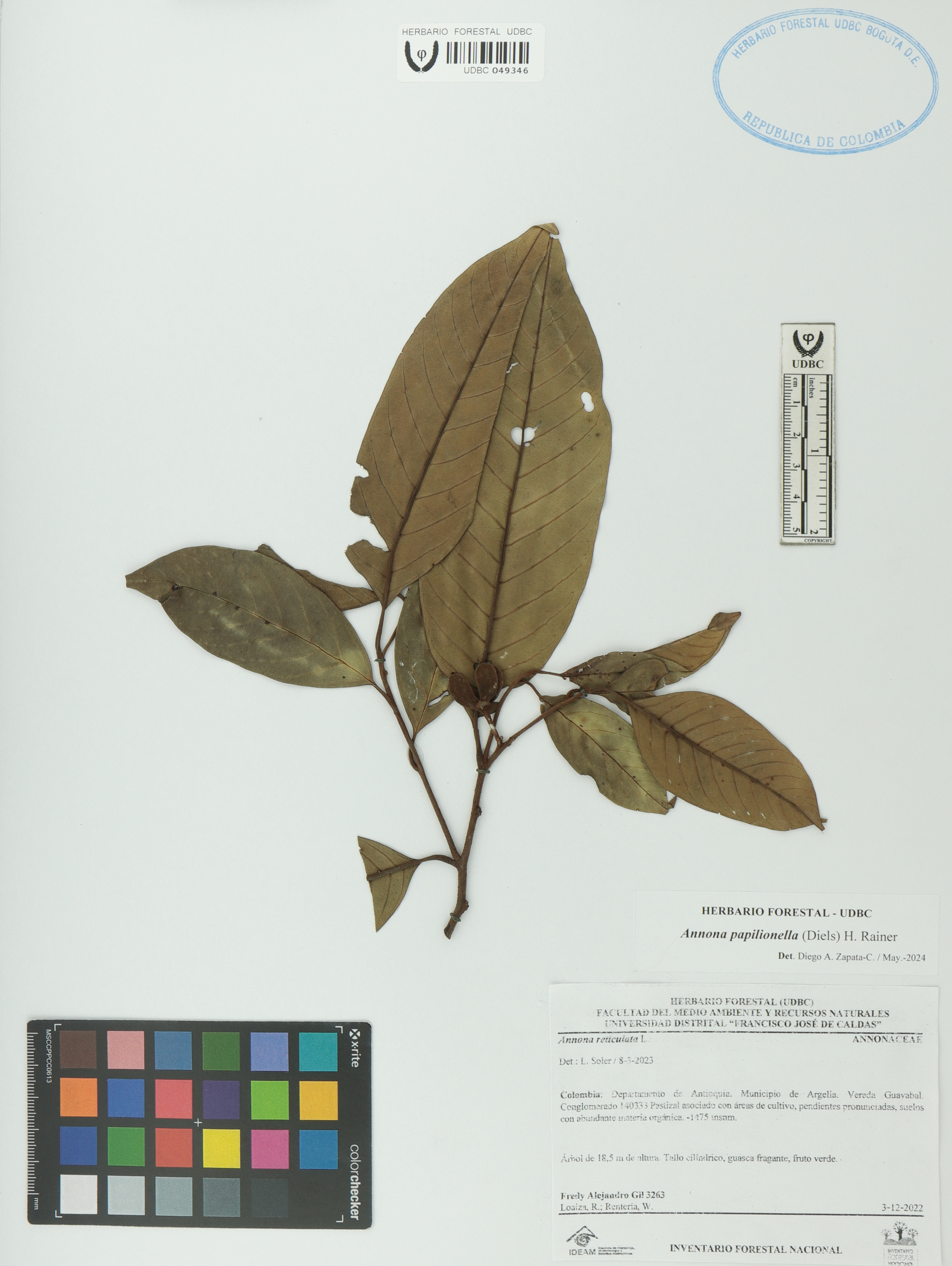 | dc.description | Fotografía del ejemplar Gil-R., F. 3263, determinado como Annona papilionella en el año 2024 | |