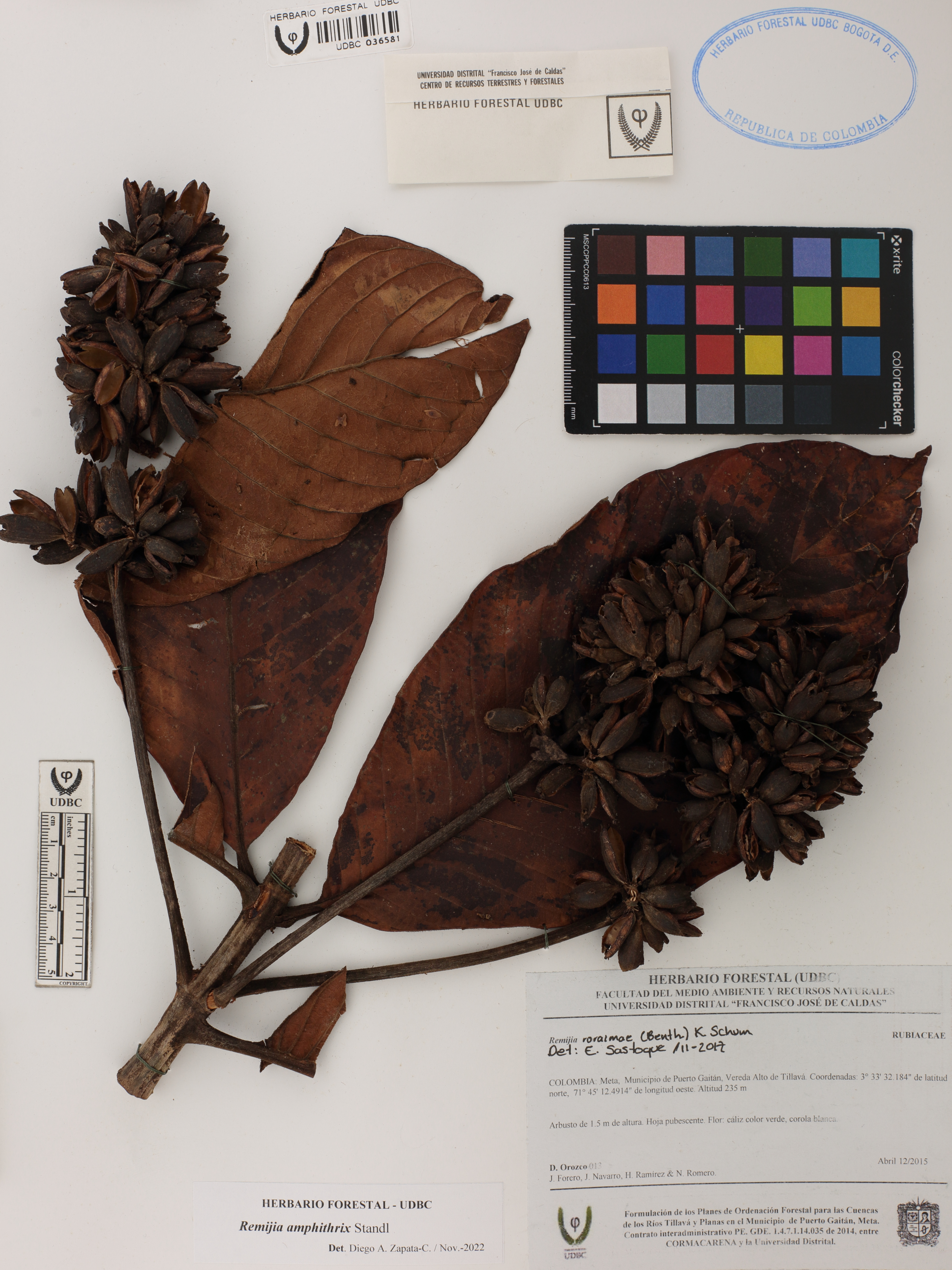 | dc.description | Fotografía del ejemplar Orozco, D. 13, determinado como Remijia amphithrix en el año 2022 | |