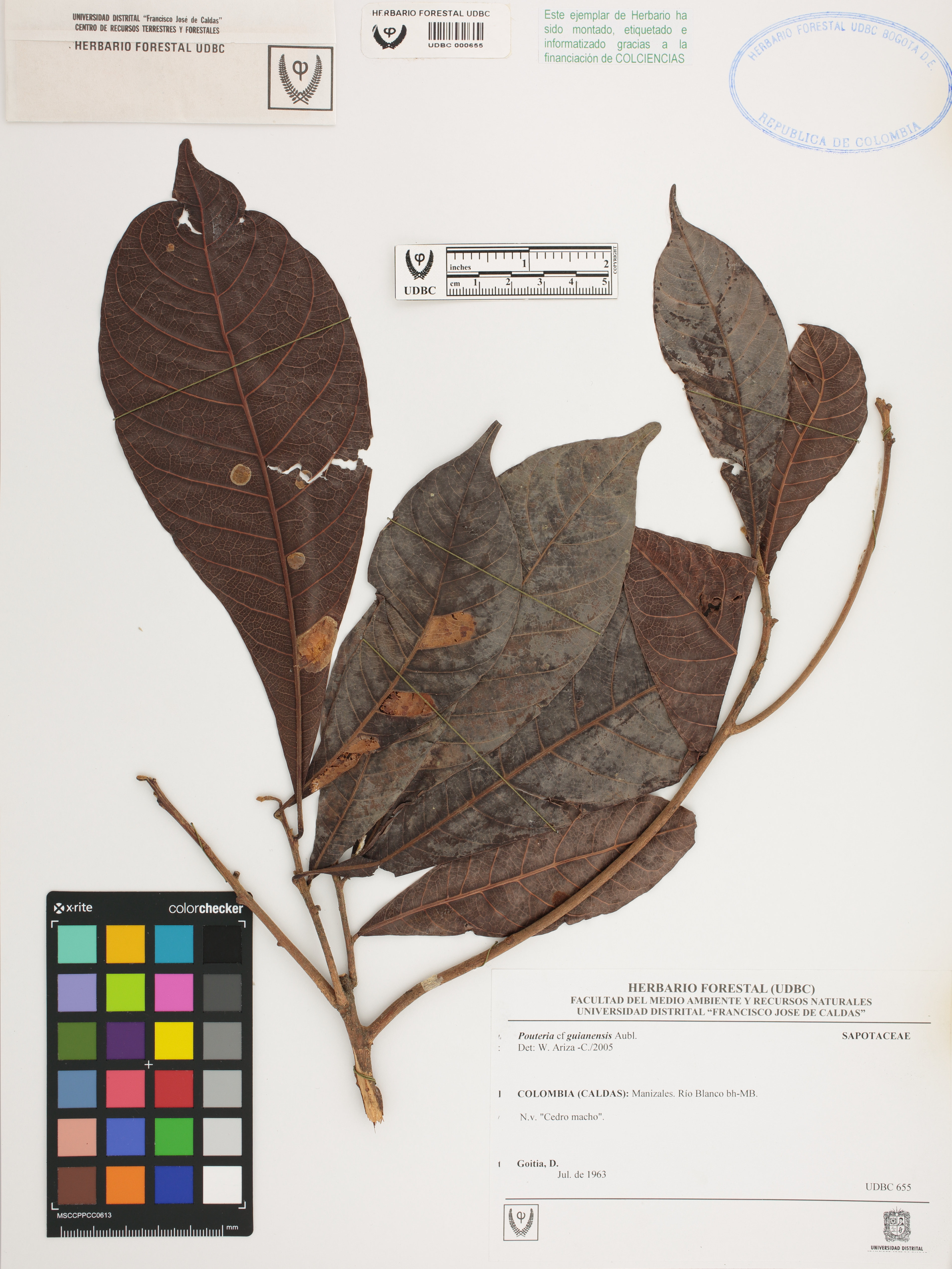 Fotografía del ejemplar Goitia, D., determinado como Pouteria guianensis en el año 2005