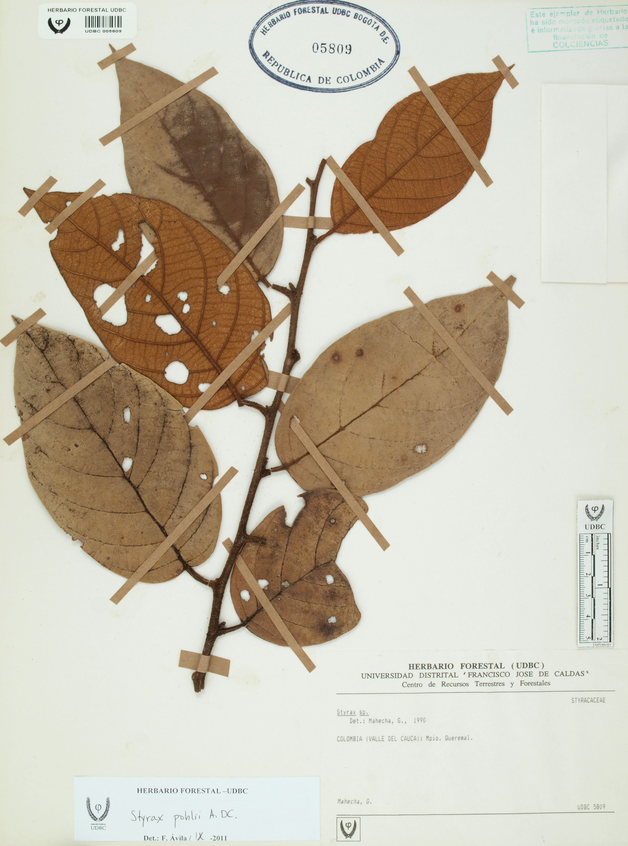 | dc.description | Fotografía del ejemplar Mahecha, G., determinado como Styrax pohlii en el año 2011 | |