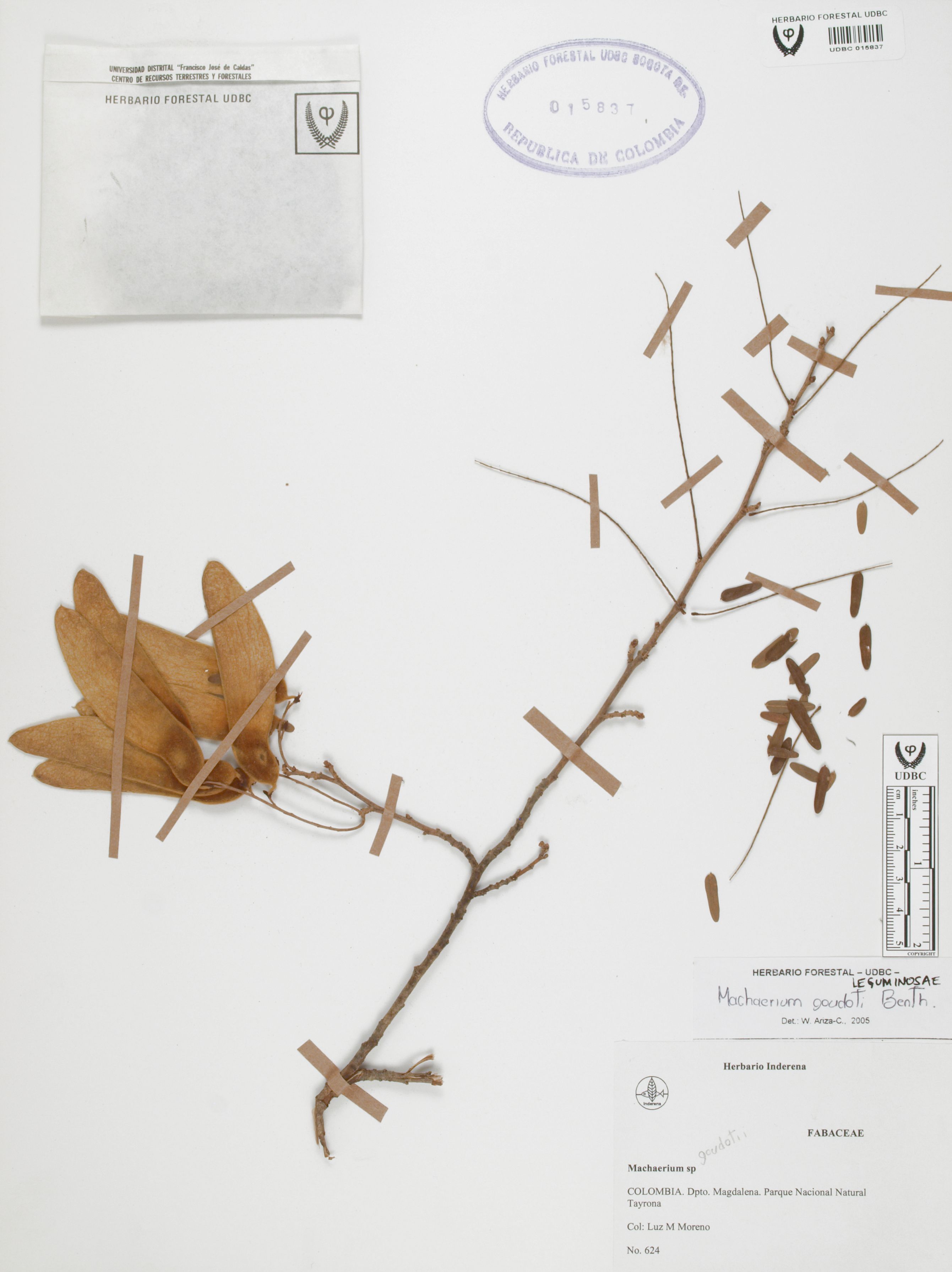 Fotografía del ejemplar Moreno, L. 624, determinado como Machaerium goudotii en el año 2005