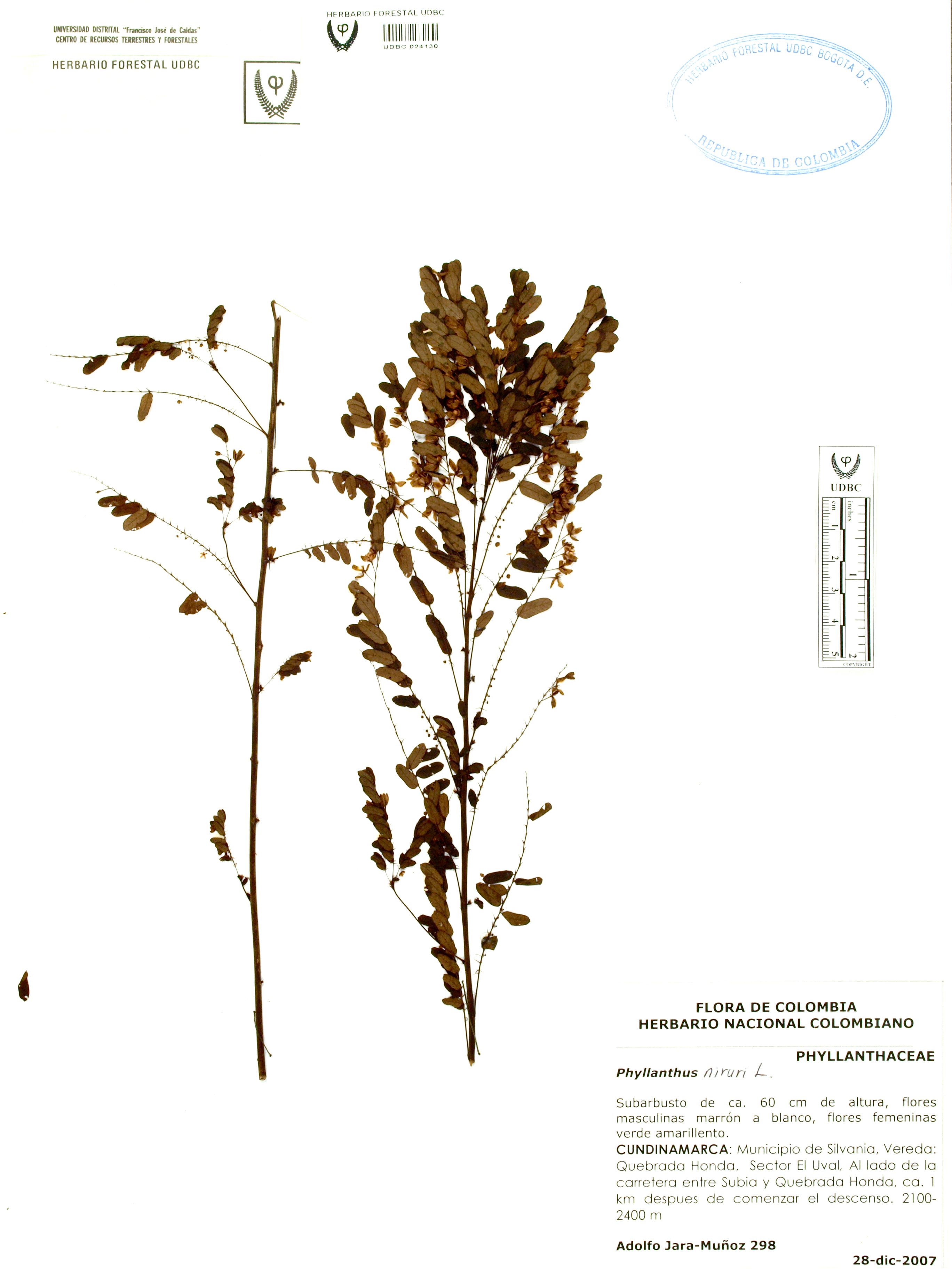 Fotografía del ejemplar Jara, A. 298, determinado como Phyllanthus niruri