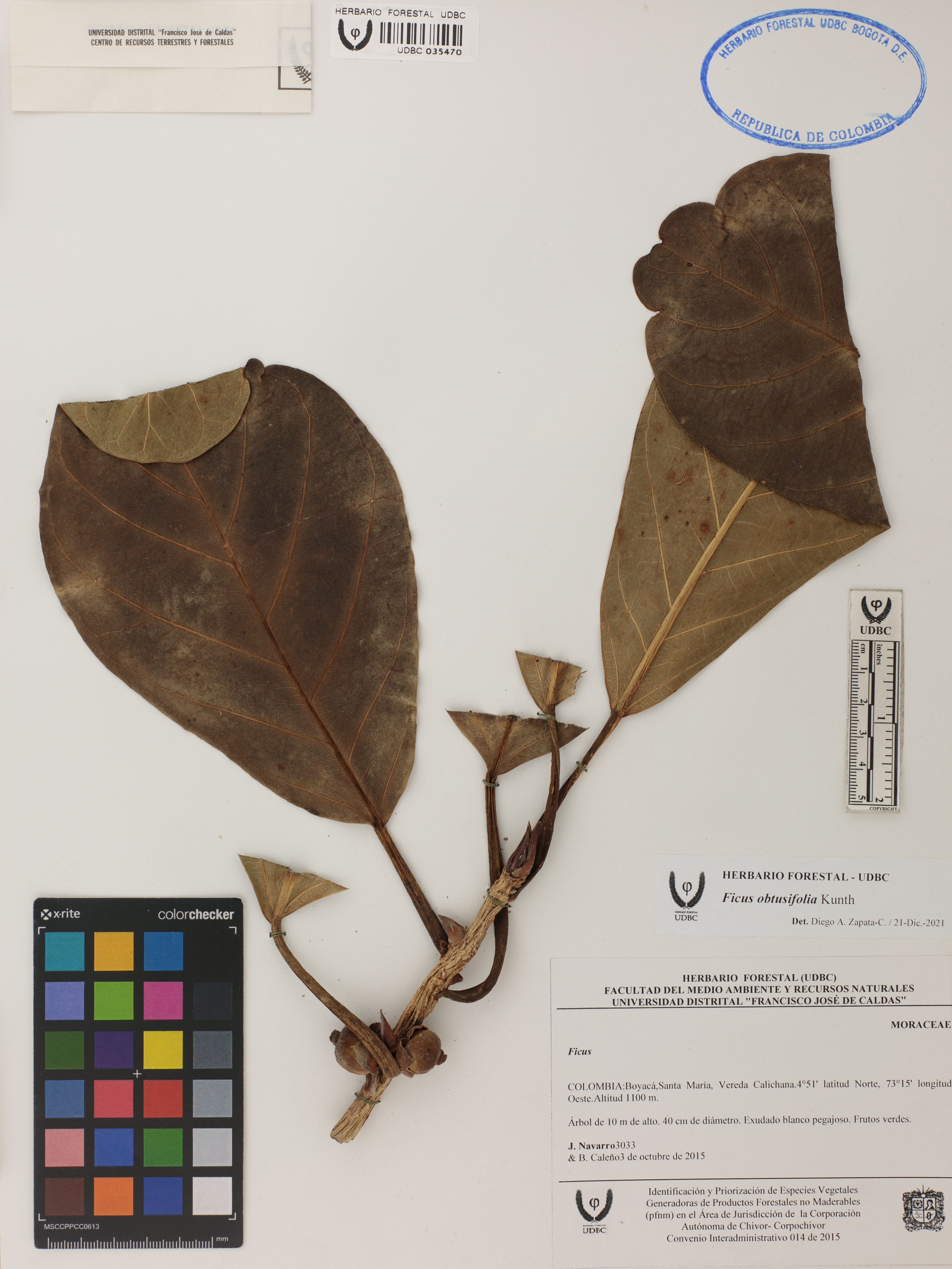 Fotografía del ejemplar Navarro, J. 3033, determinado como Ficus obtusifolia en el año 2021