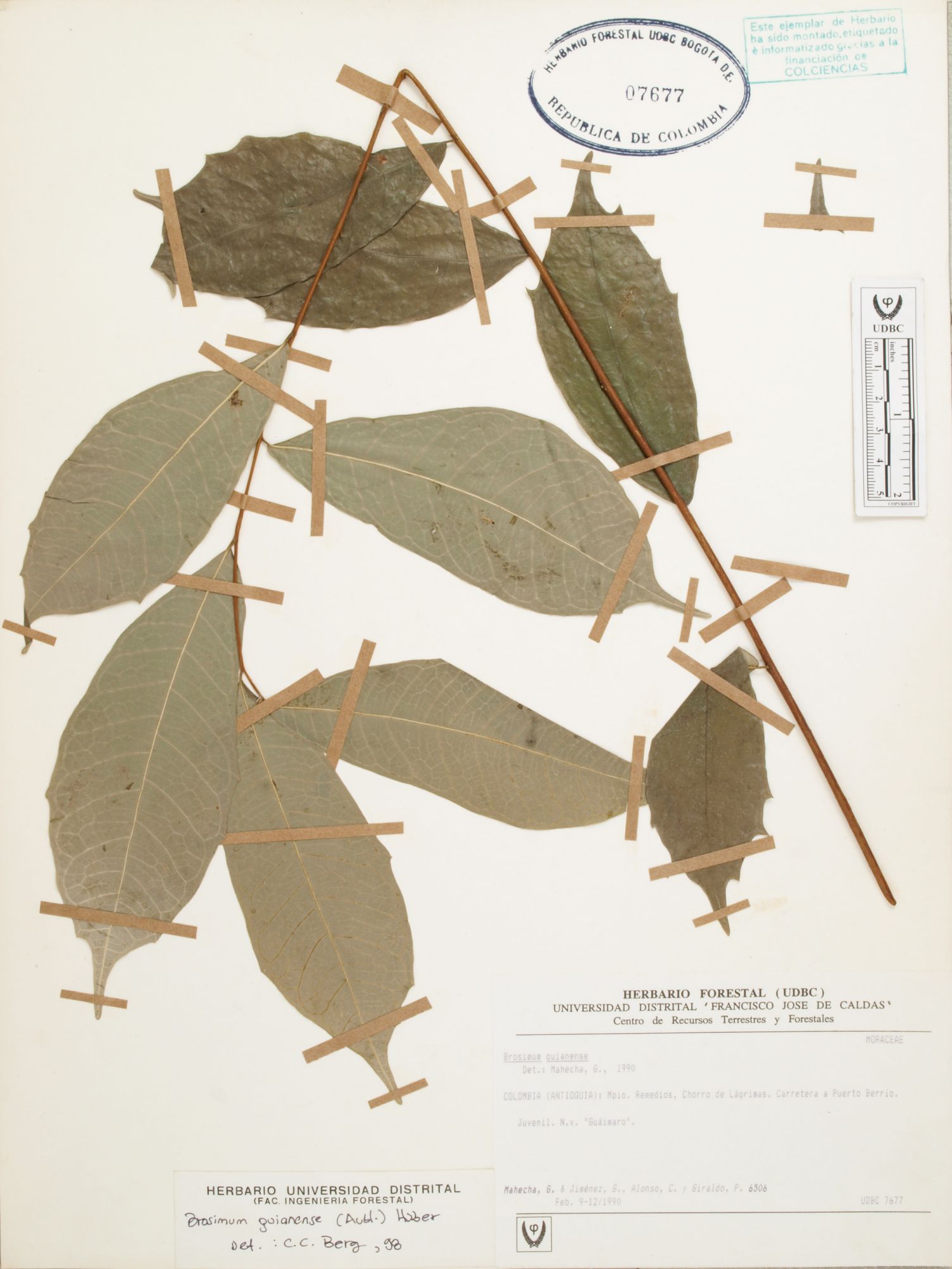 Fotografía del ejemplar Mahecha, G. 6506, determinado como Brosimum guianense en el año 1998