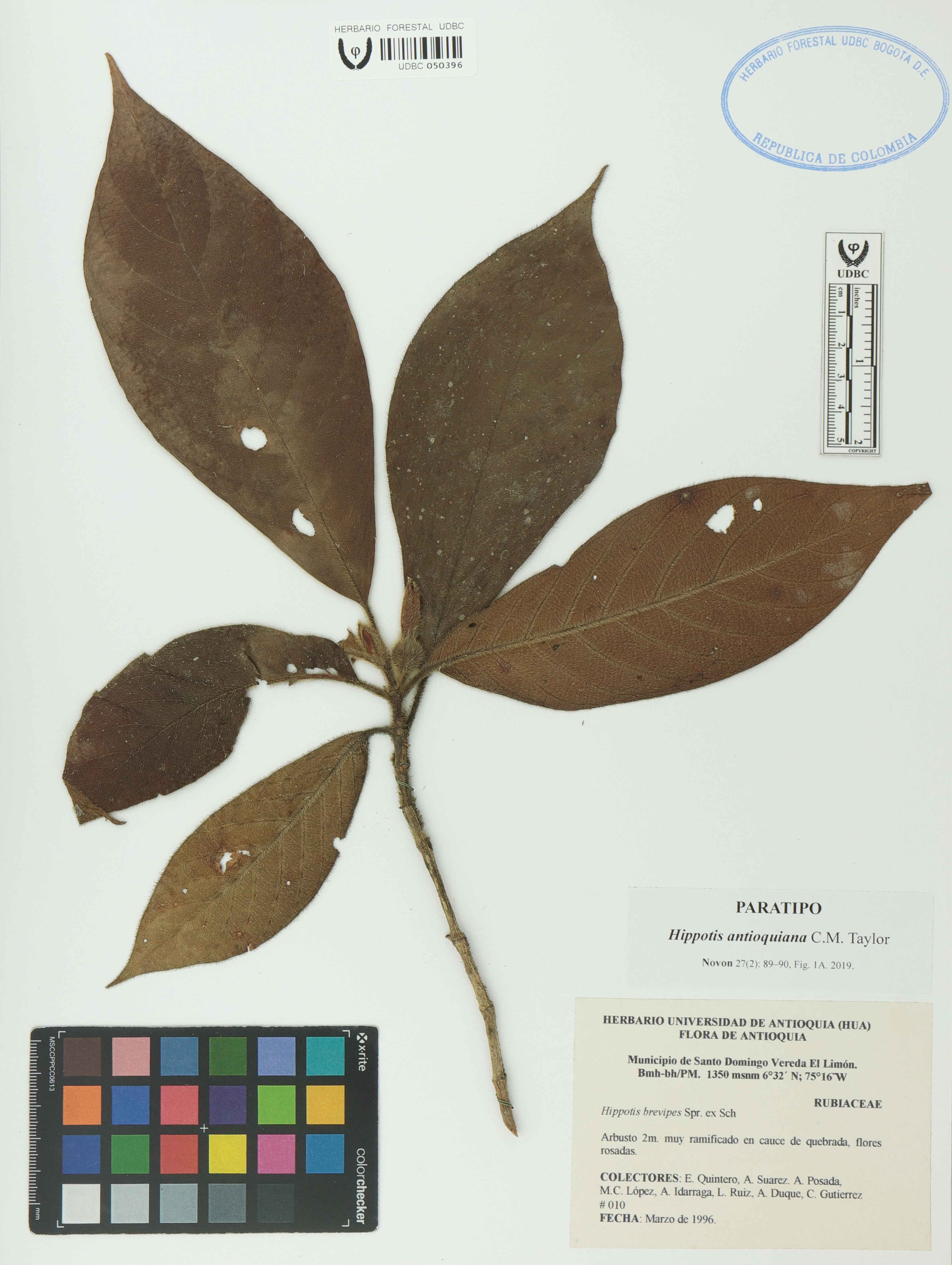 Fotografía del ejemplar Quintero, E. 10, Paratipo de Hippotis antioquiana