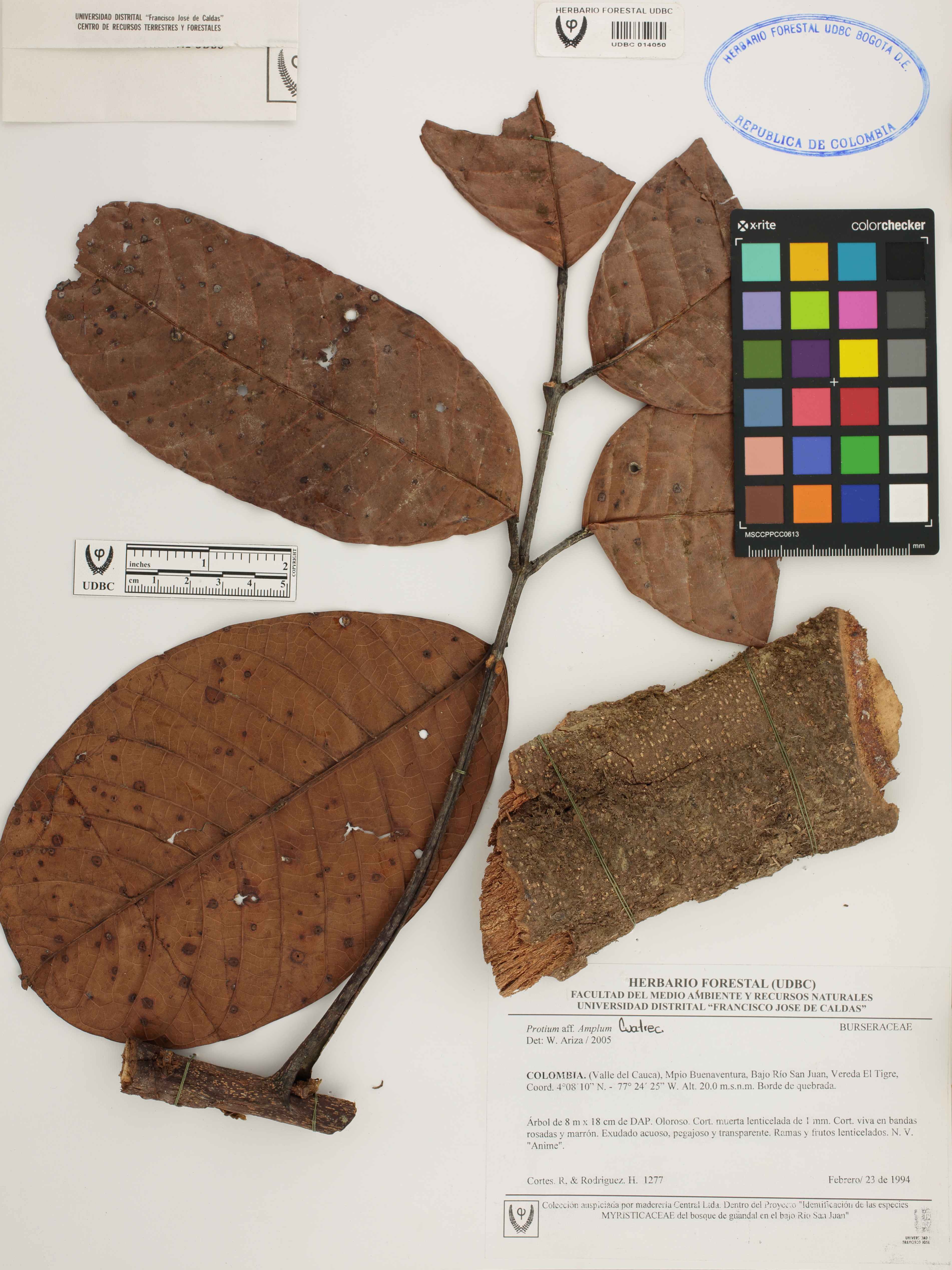 Fotografía del ejemplar Cortés, R. 1277, determinado como Protium amplum en el año 2005