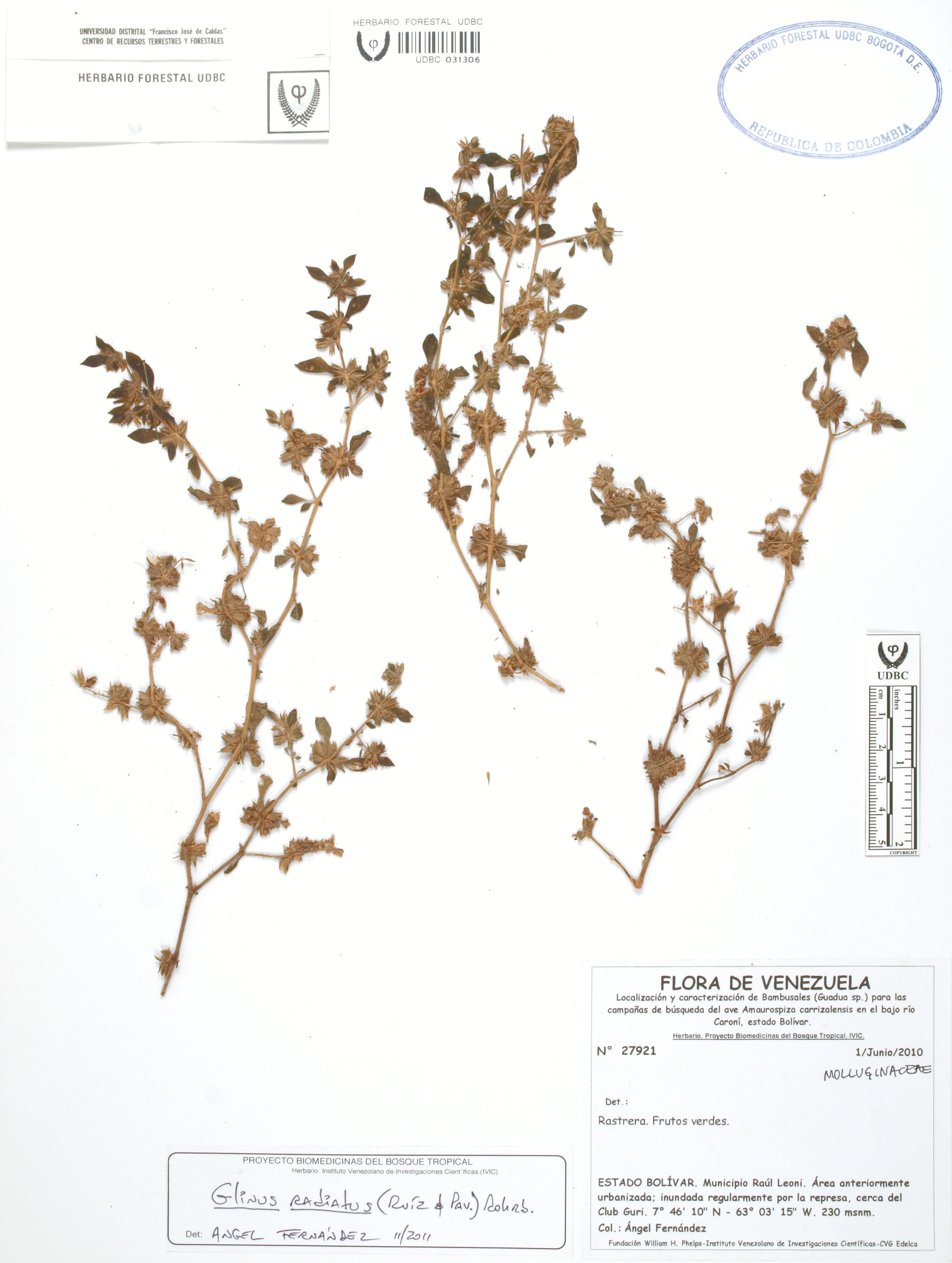 Fotografía del ejemplar Fernández, A. 27921, determinado como Glinus radiatus en el año 2011