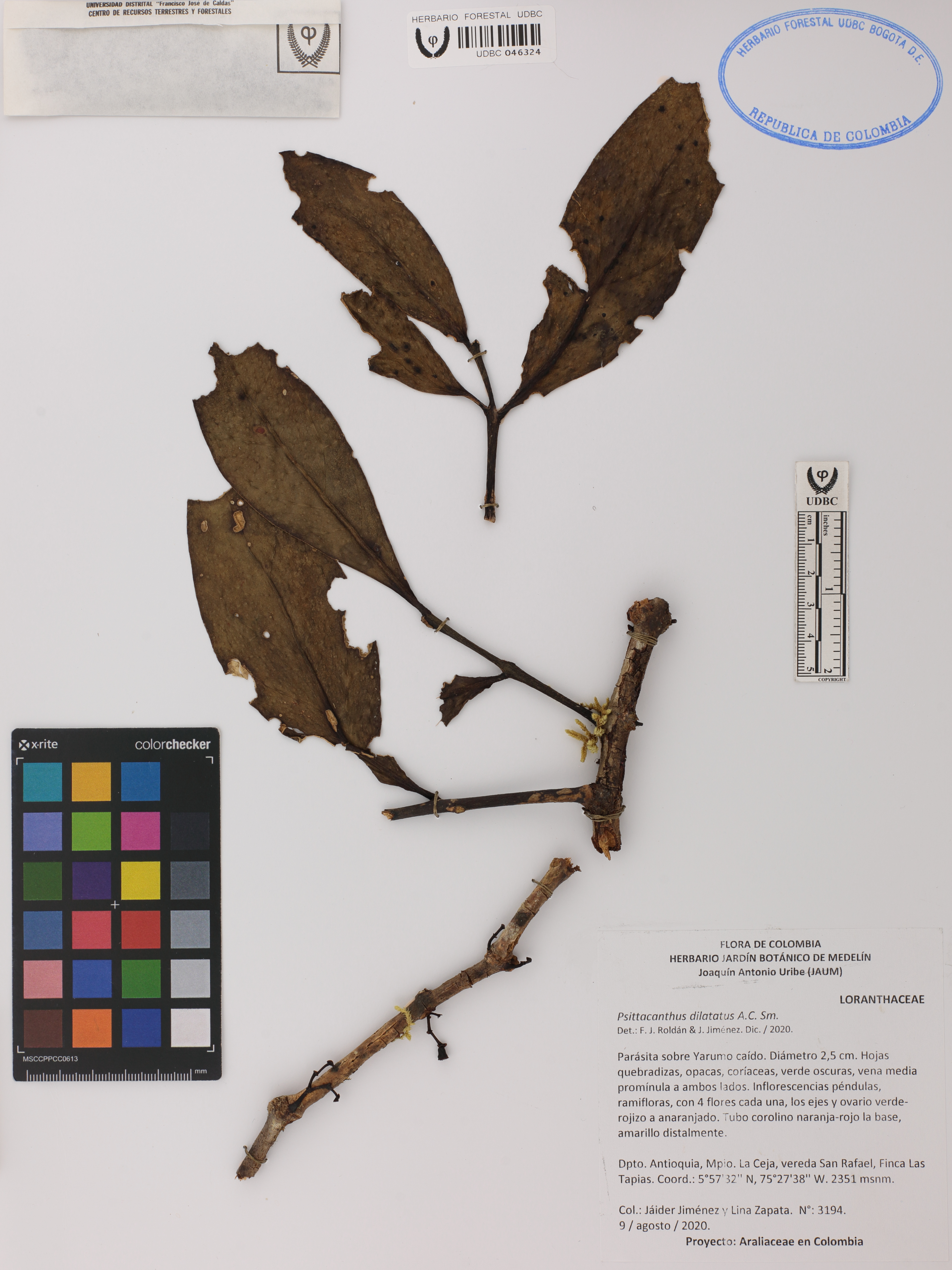 Fotografía del ejemplar Jiménez, J. 3194, determinado como Psittacanthus dilatatus en el año 2020