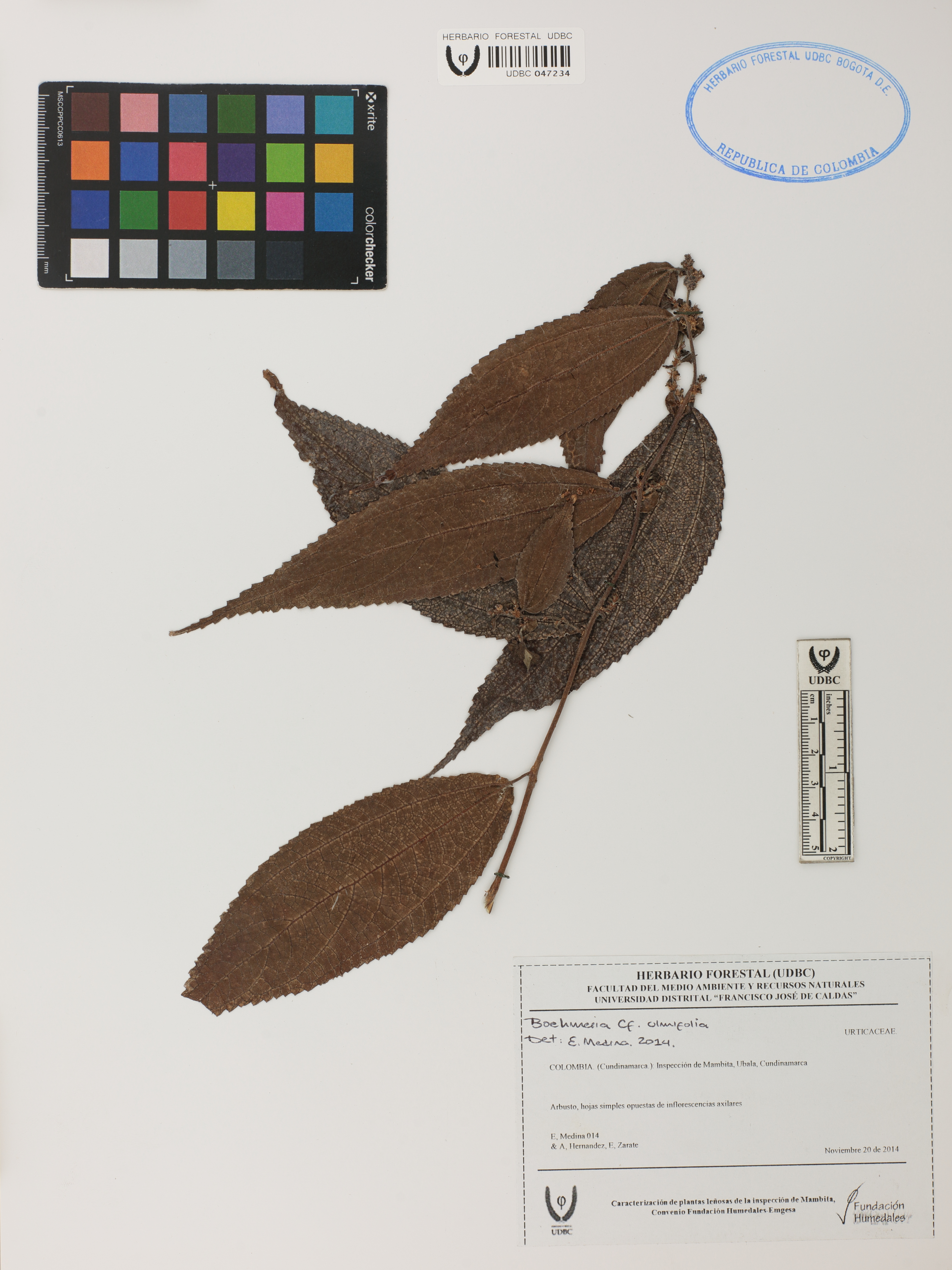 Fotografía del ejemplar Medina, E. 014, determinado como Boehmeria ulmifolia en el año 2014