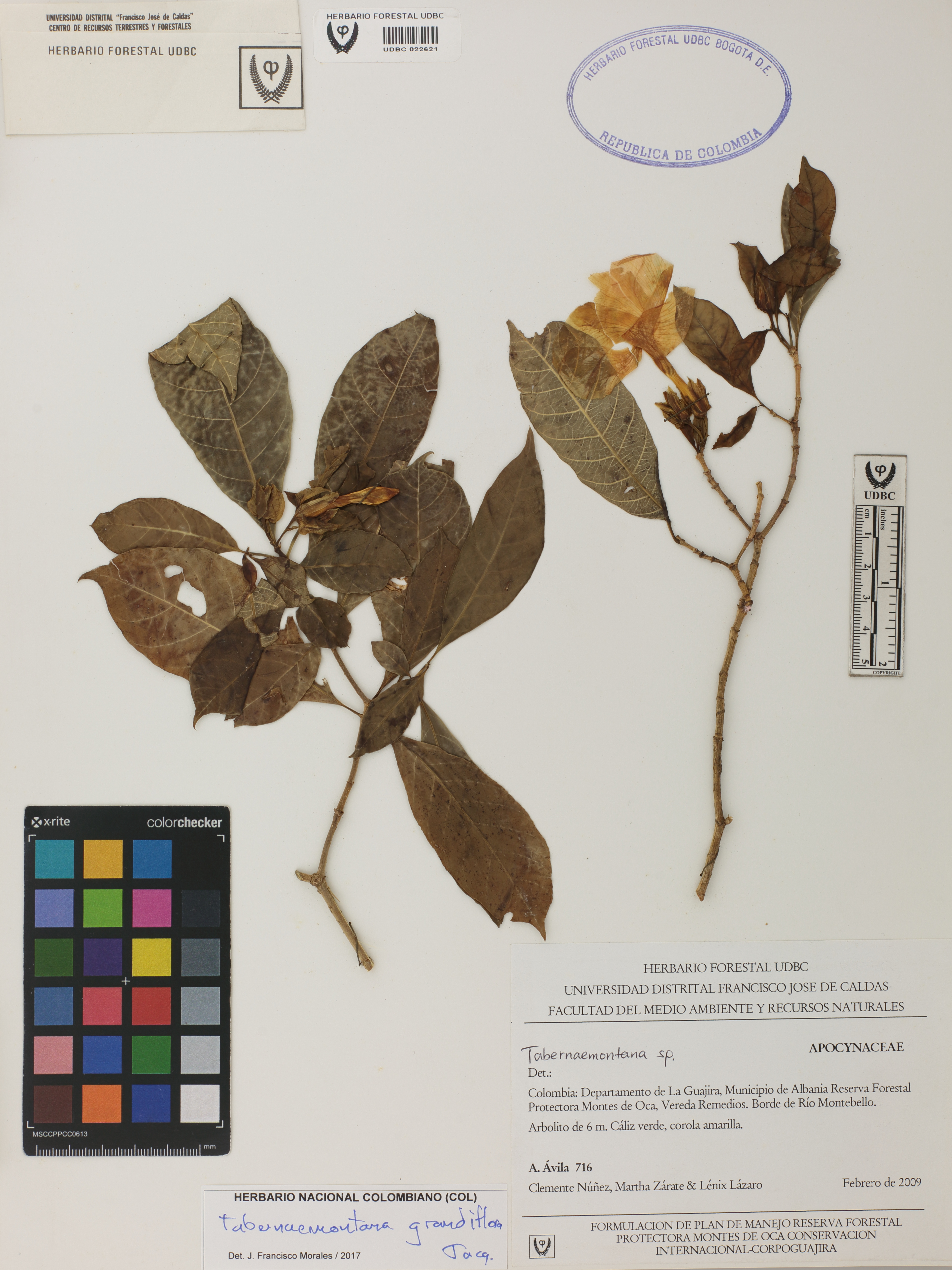 Fotografía del ejemplar Ávila, A. 716, determinado como Tabernaemontana grandiflora en el año 2017