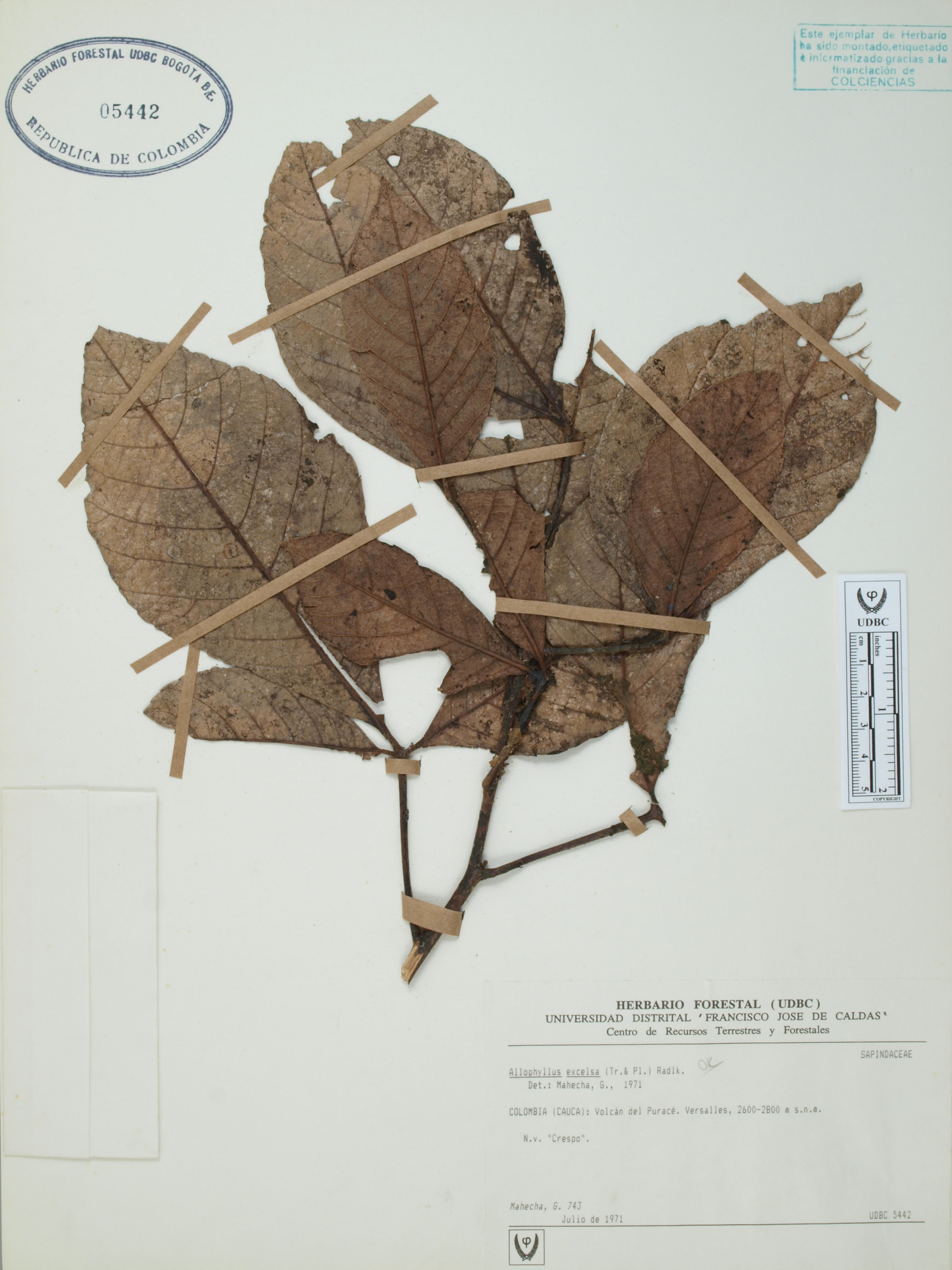 Fotografía del ejemplar Mahecha, G. 743, determinado como Allophylus excelsus
