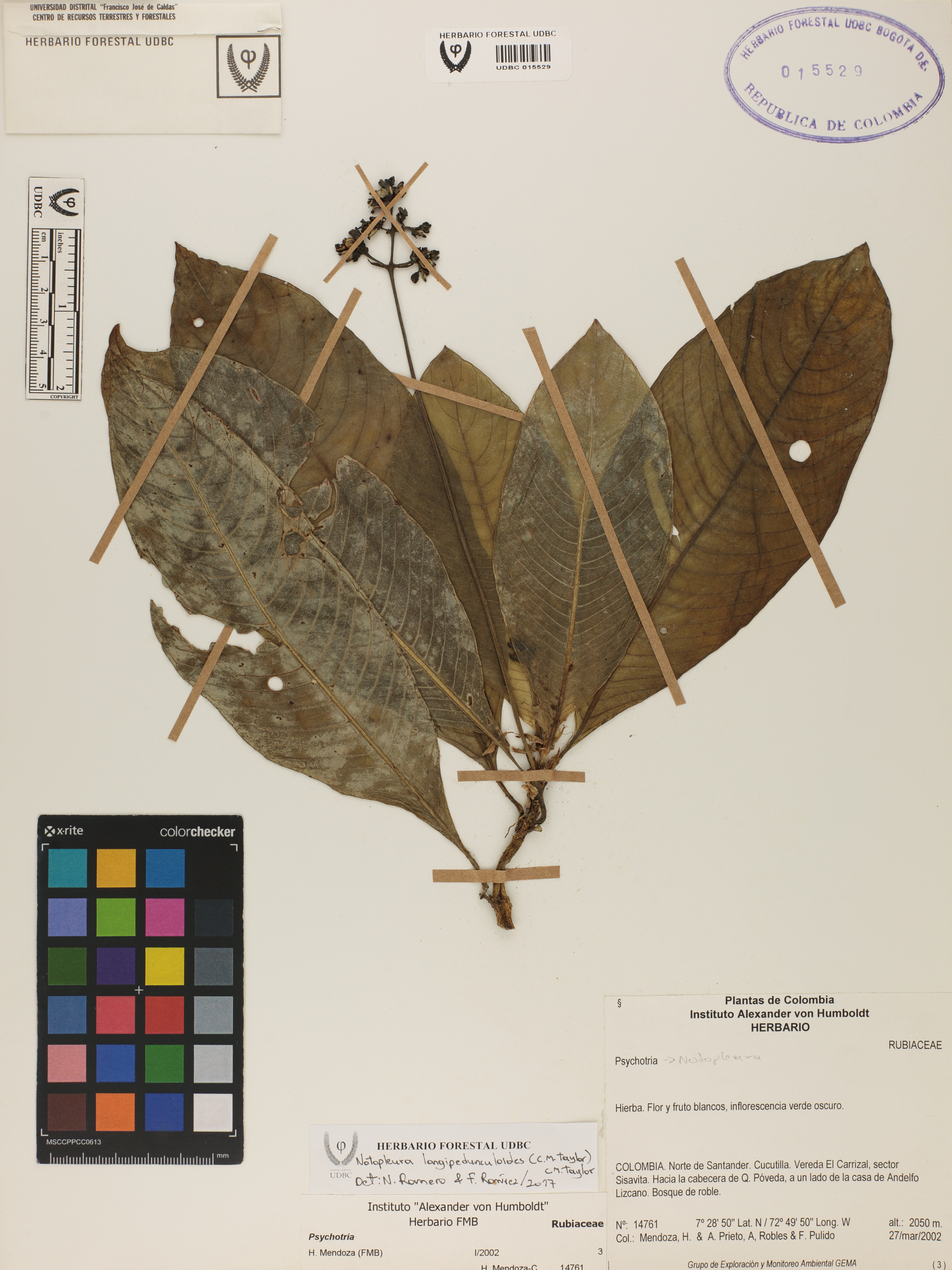 Fotografía del ejemplar Mendoza, H. 14761, determinado como Notopleura longipedunculoides en el año 2017