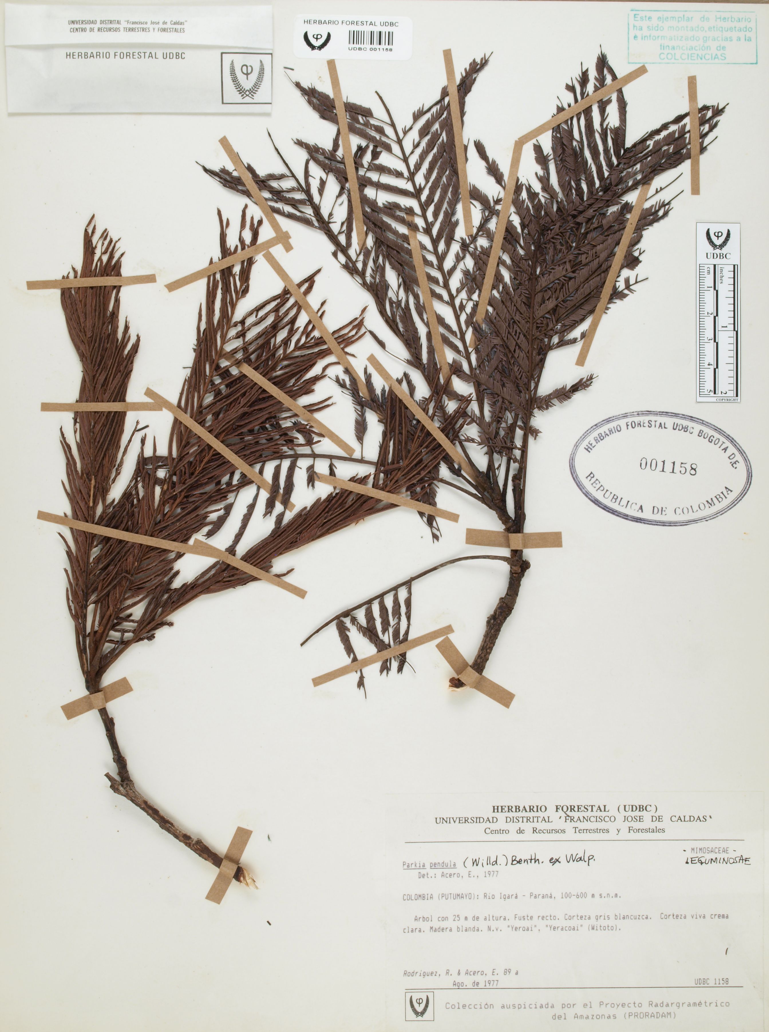 Fotografía del ejemplar Rodríguez, R. 89, determinado como Parkia pendula en el año 1977