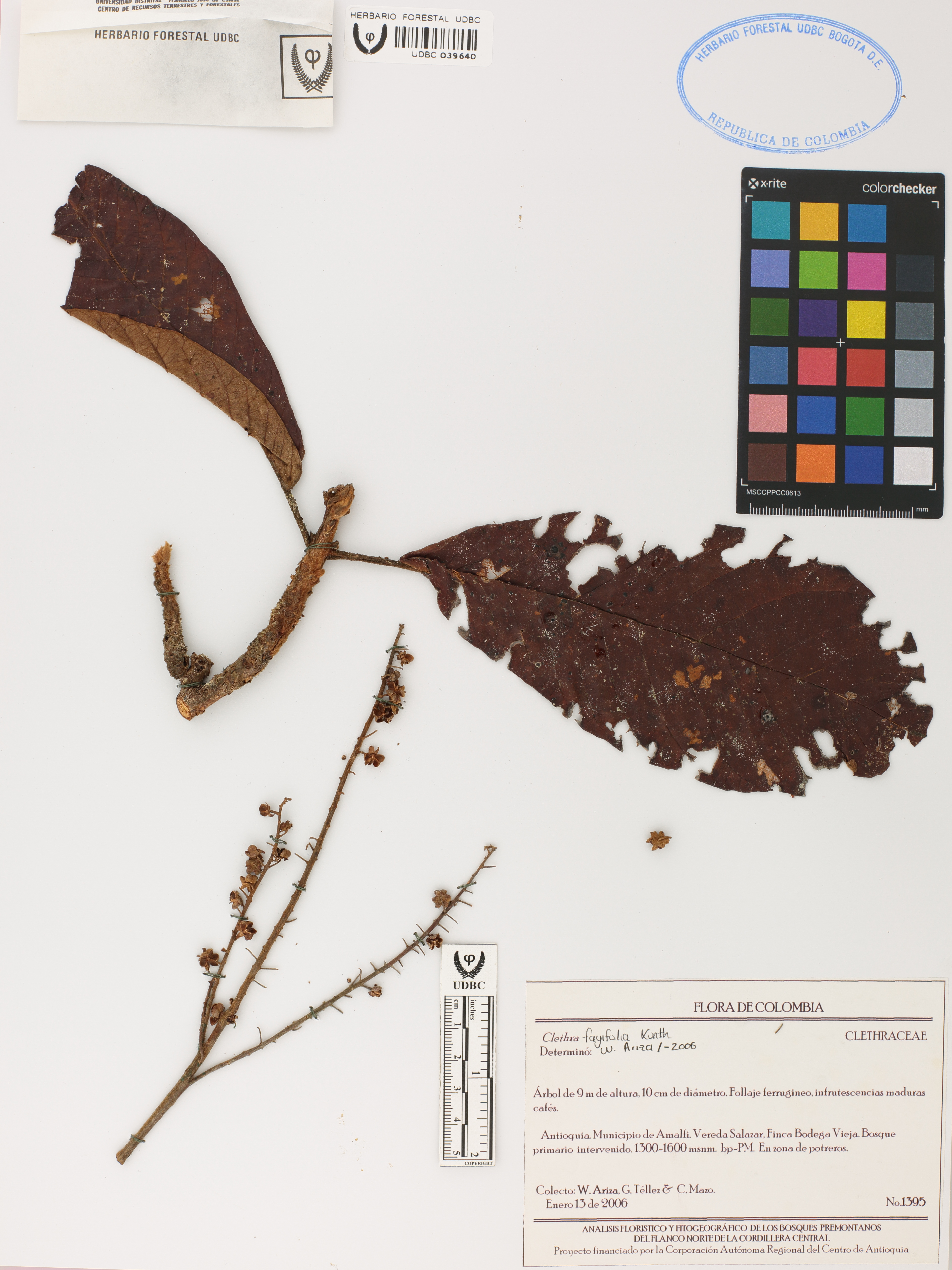 Fotografía del ejemplar Ariza, W. 1395, determinado como Clethra fagifolia en el año 2006