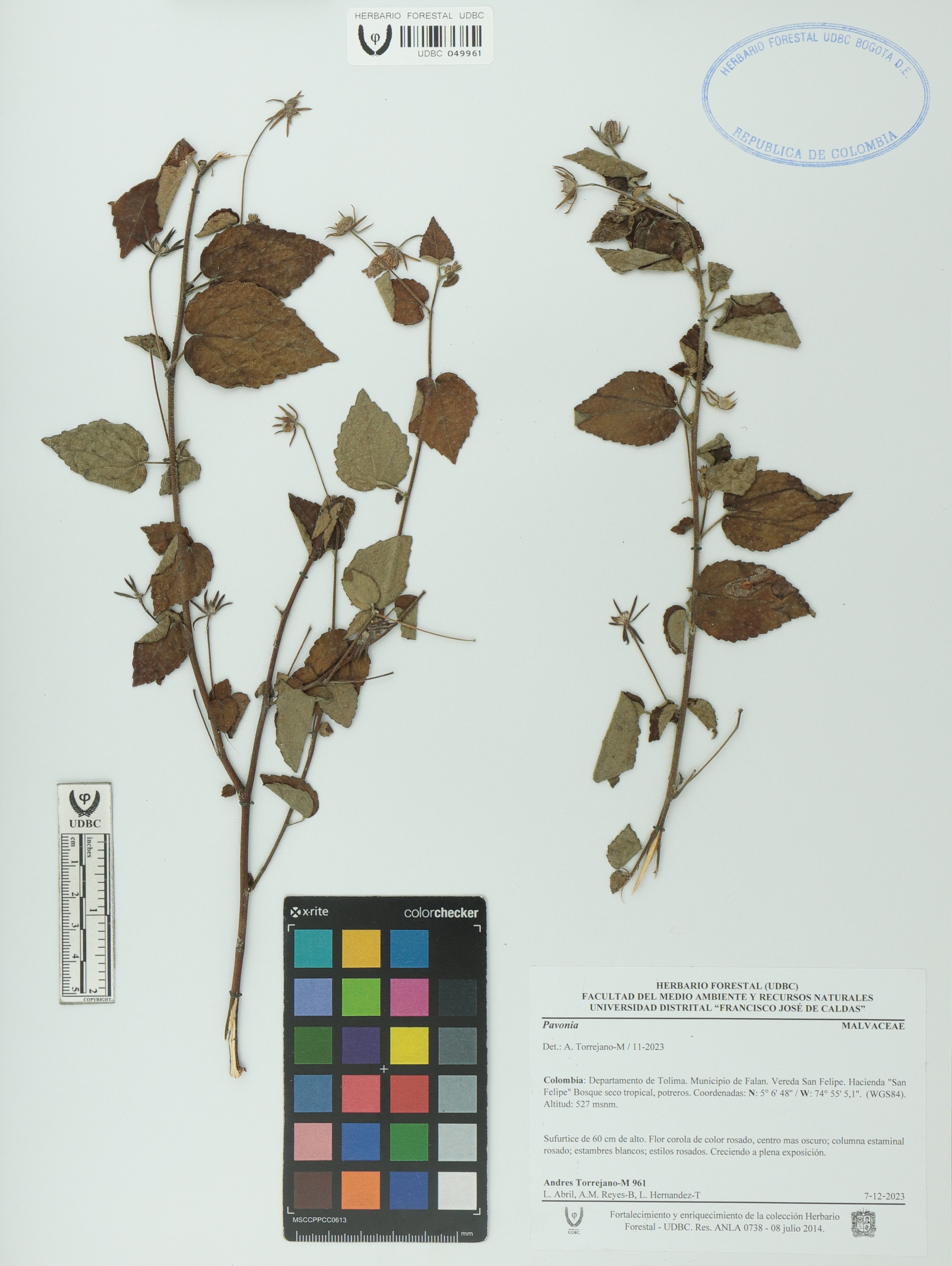Fotografía del ejemplar Torrejano-M., A. 961, determinado como Pavonia sp. en el año 2023