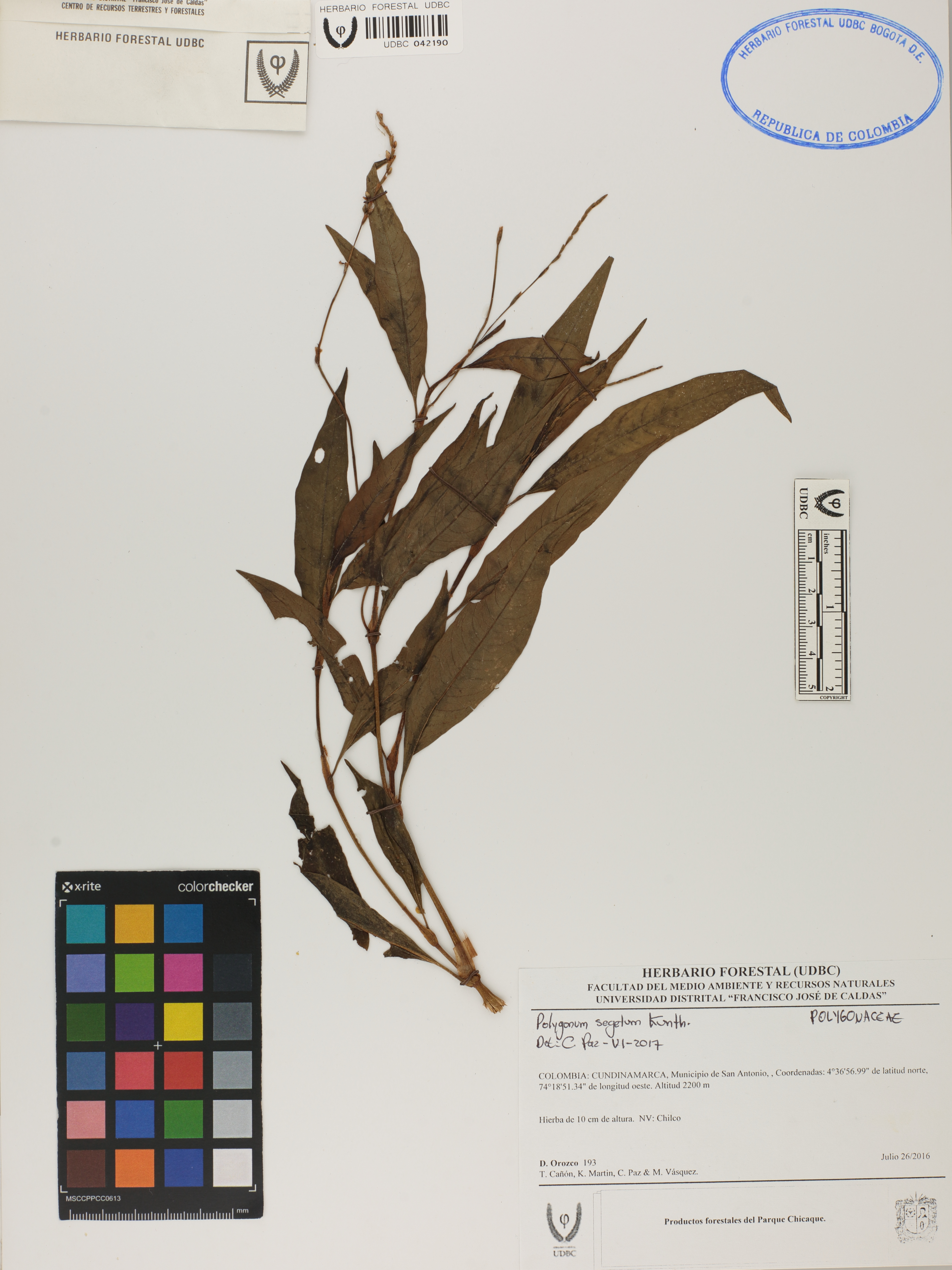 Fotografía del ejemplar Orozco, D. 193, determinado como Polygonum segetum en el año 2017