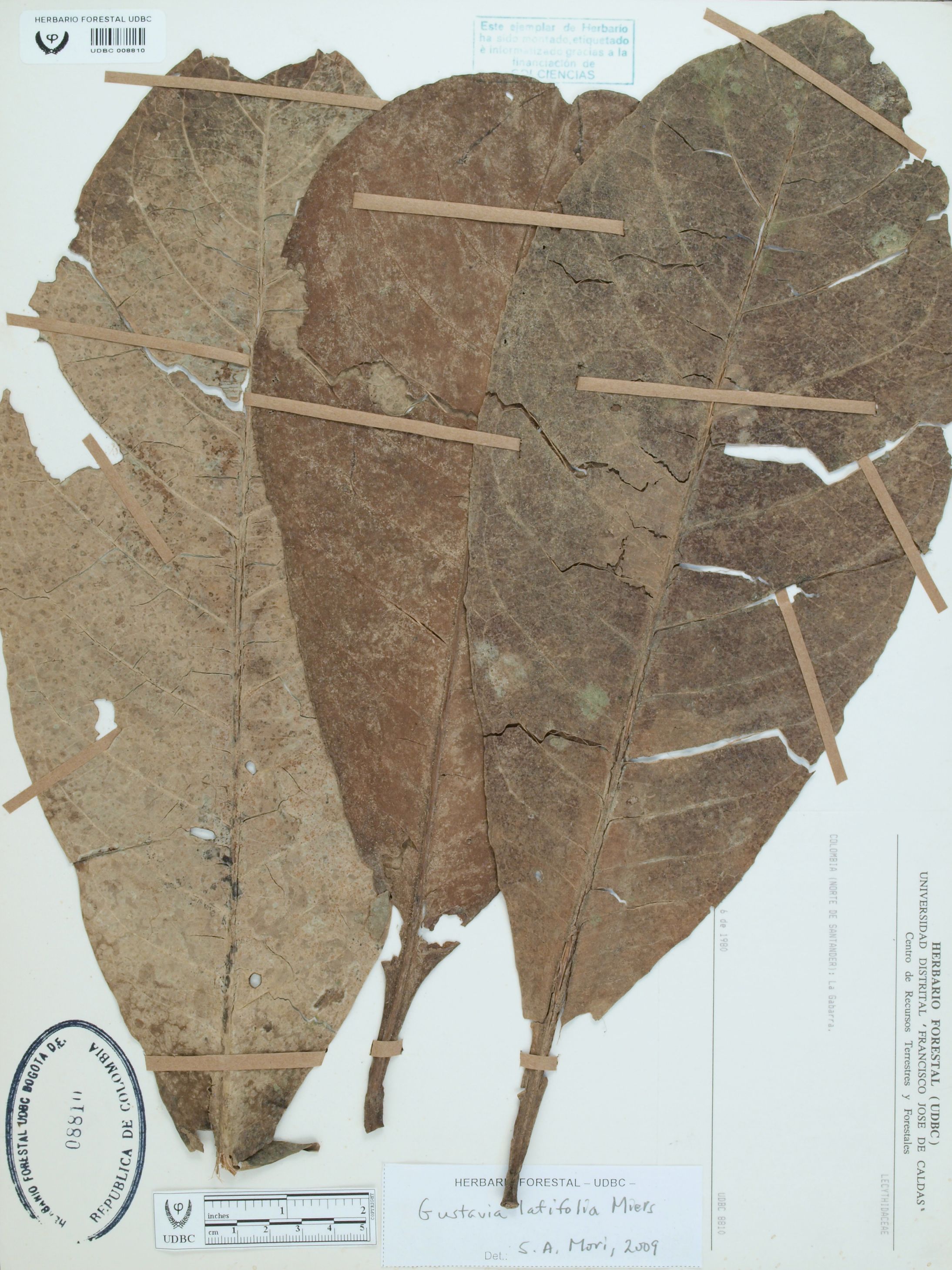 Fotografía del ejemplar Mahecha, G., determinado como Gustavia latifolia en el año 2009