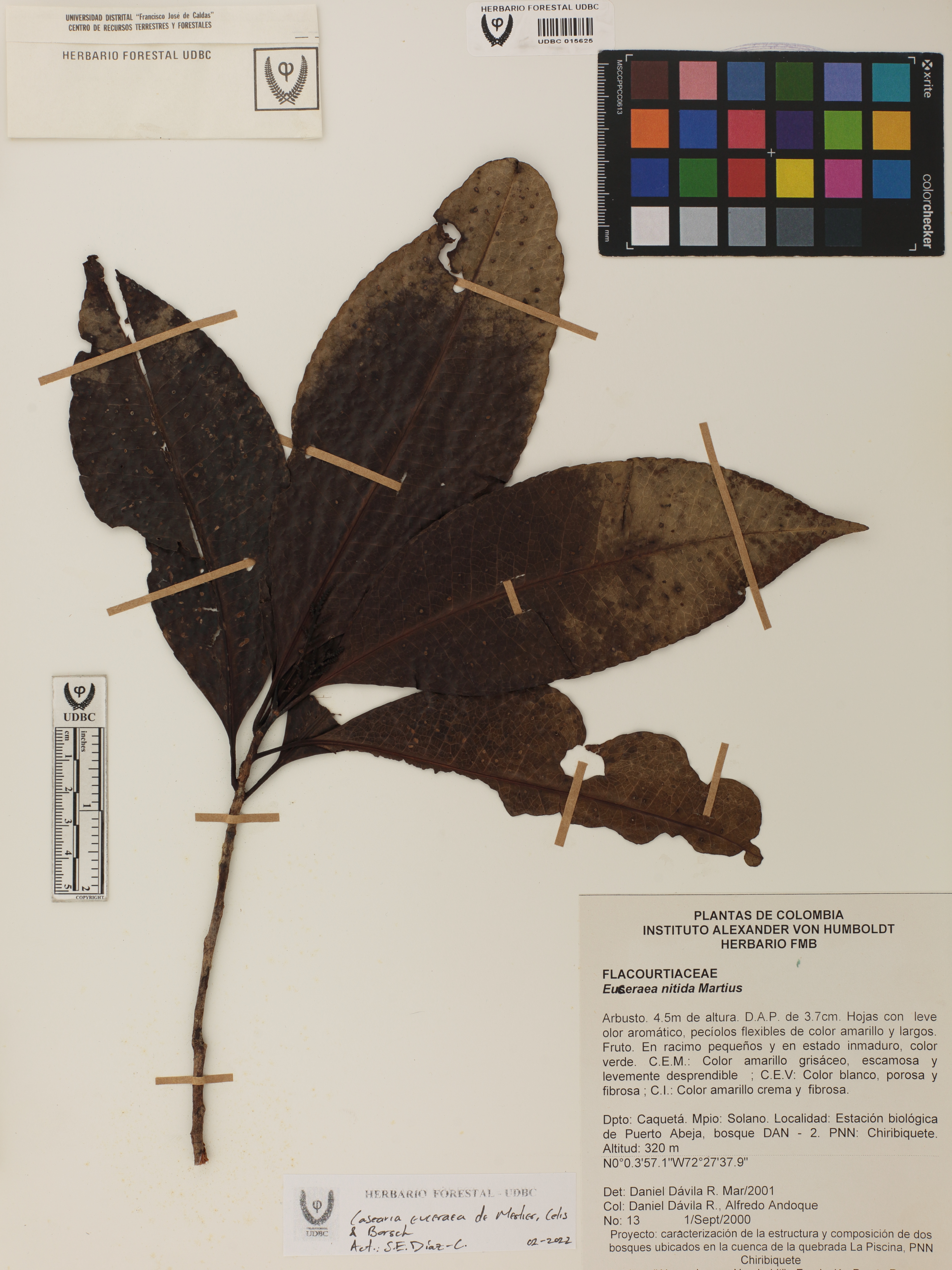 | dc.description | Fotografía del ejemplar Dávila, D. 13, determinado como Casearia euceraea en el año 2001 | |