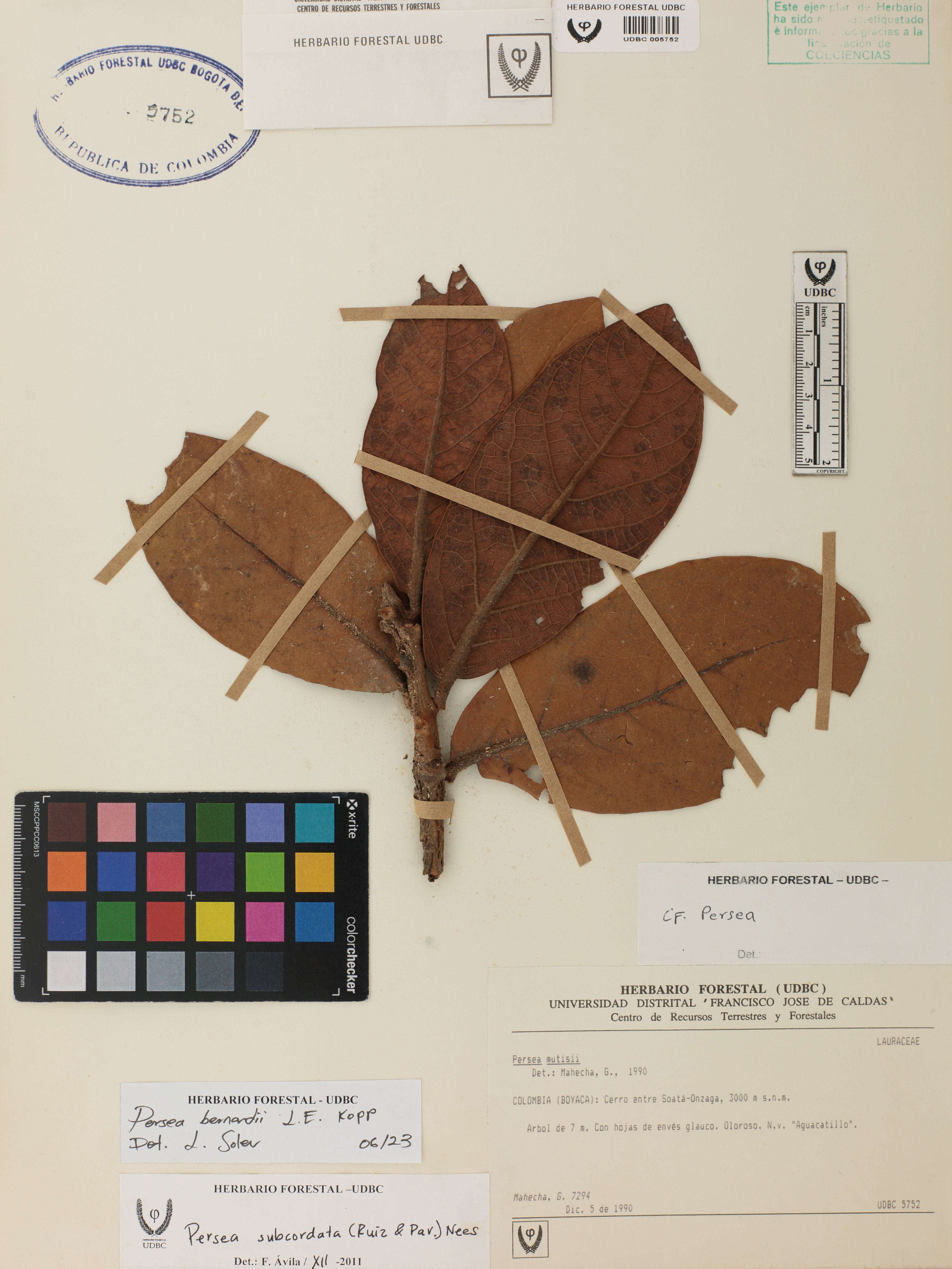 Fotografía del ejemplar Mahecha, G. 7294, determinado como Persea bernardii en el año 2023