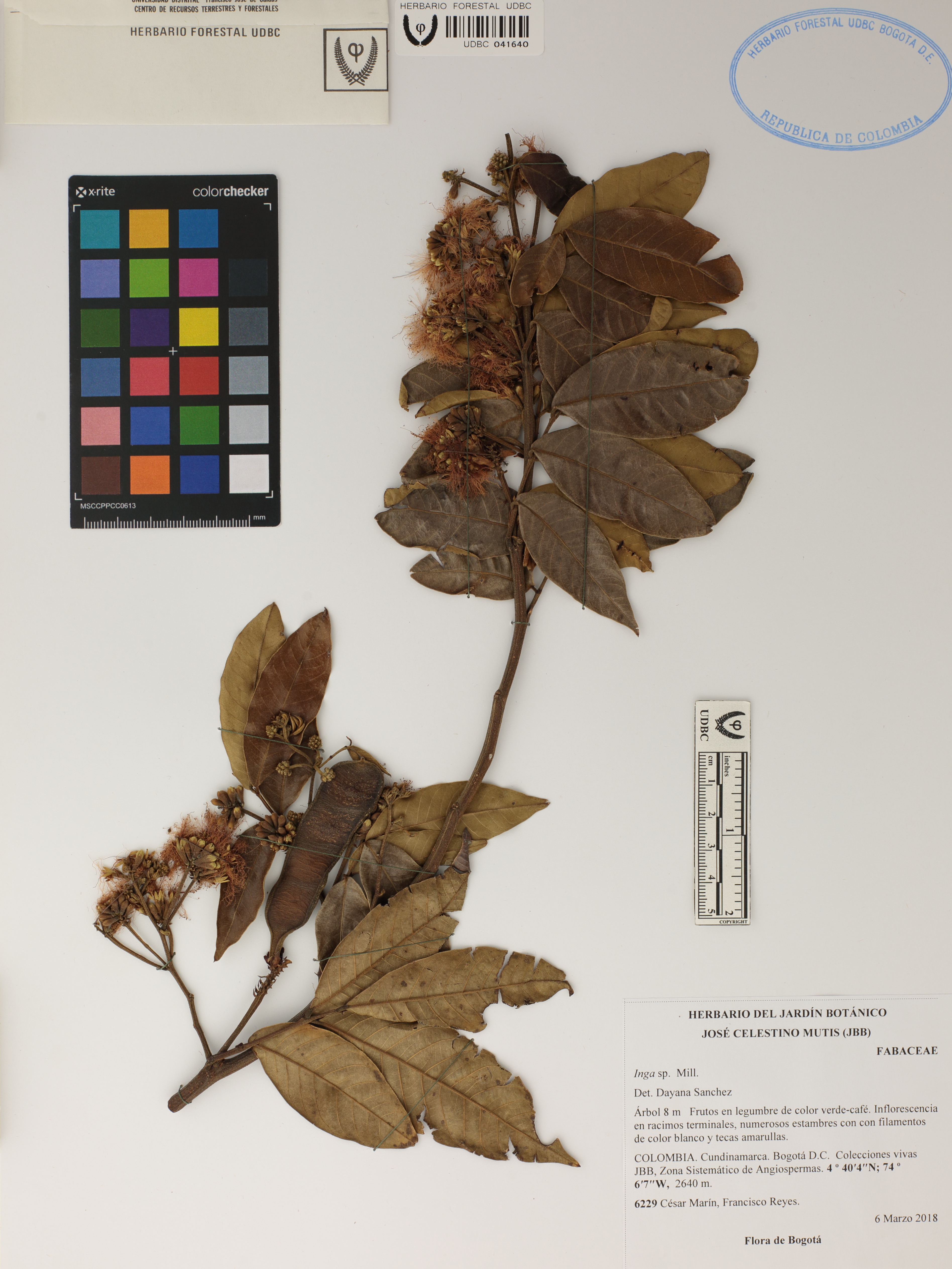| dc.description | Fotografía del ejemplar Marín, C. 6229, determinado como Inga sp. | |