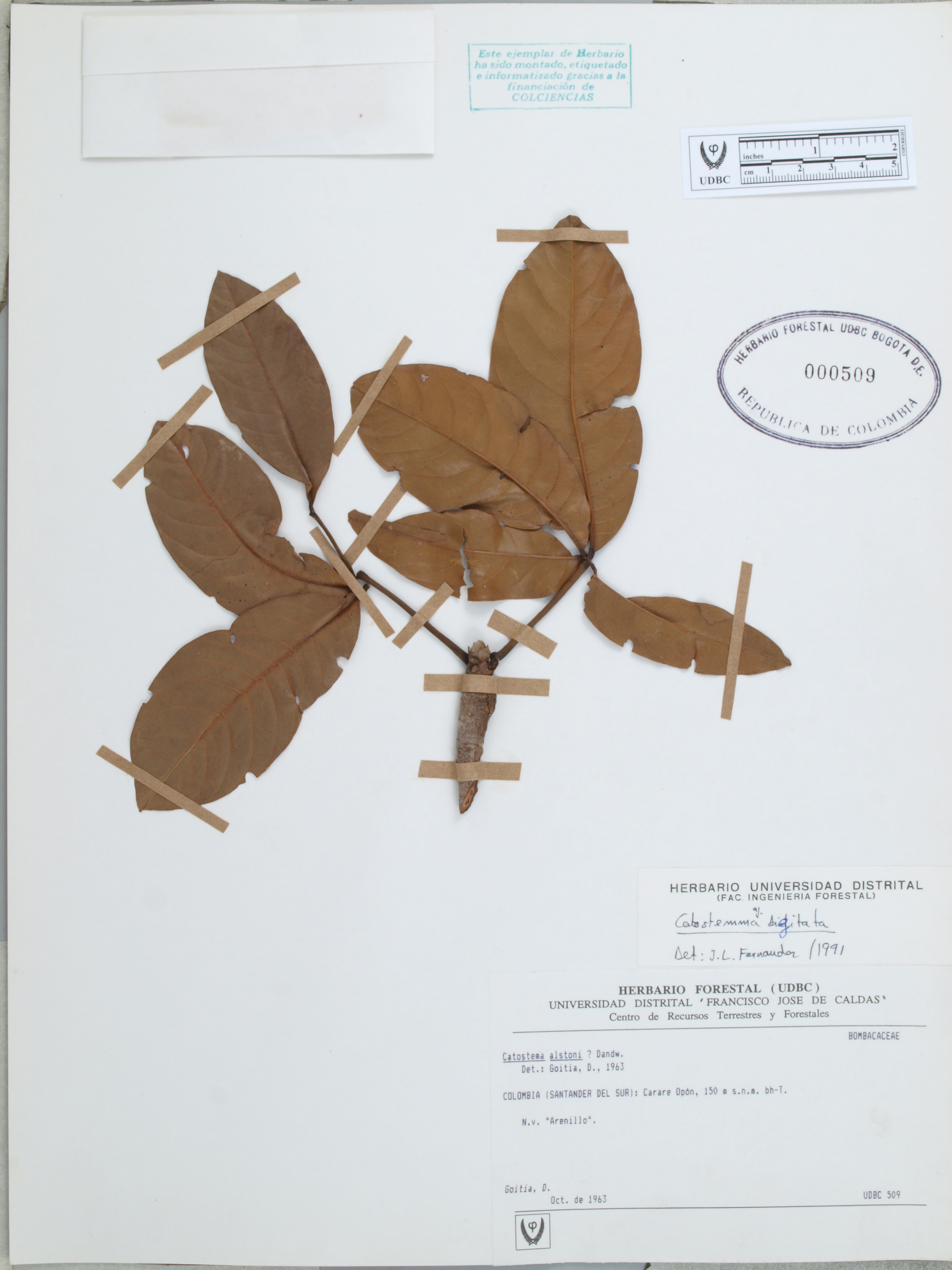 | dc.description | Fotografía del ejemplar Goitia, D., determinado como Catostemma digitata en el año 1991 | |