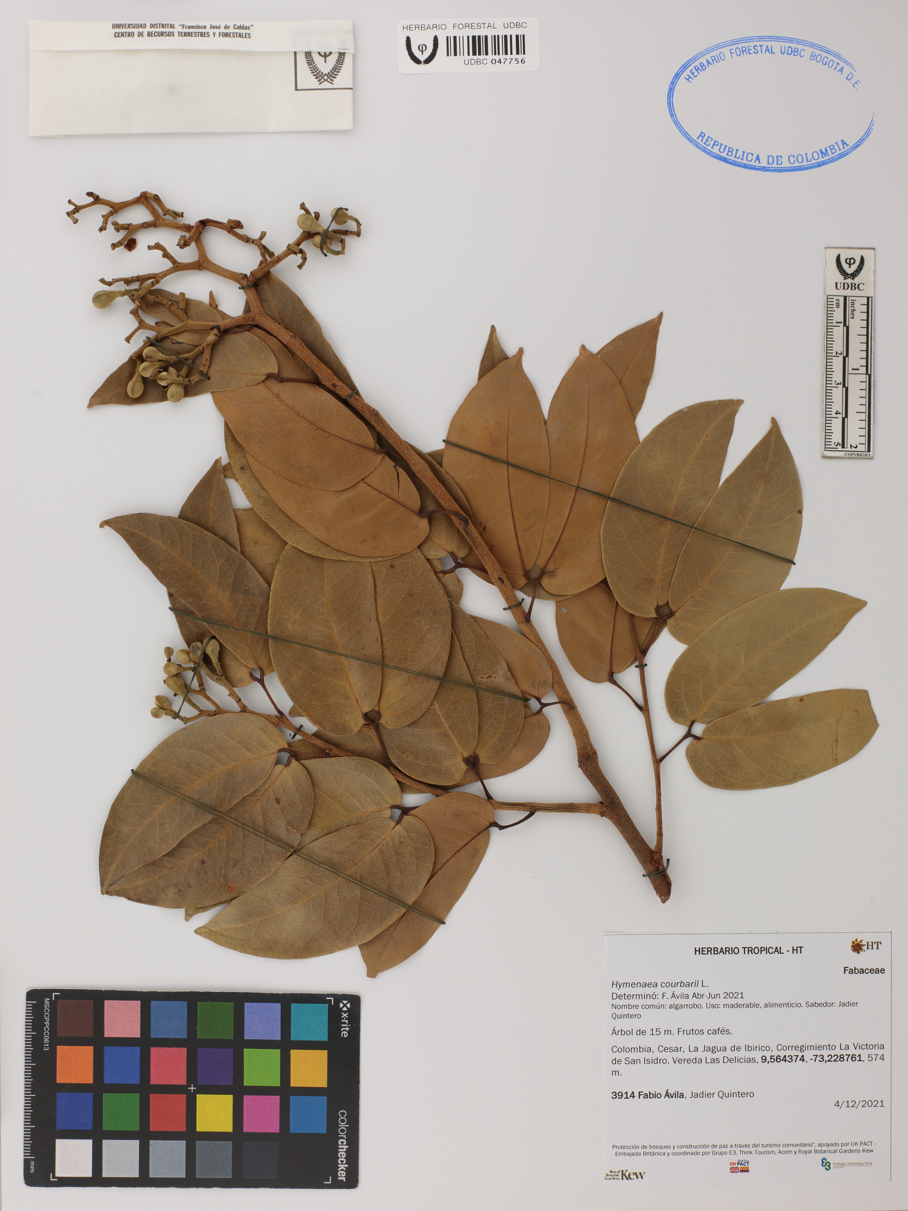 Fotografía del ejemplar Ávila, F. 3914, determinado como Hymenaea courbaril en el año 2022