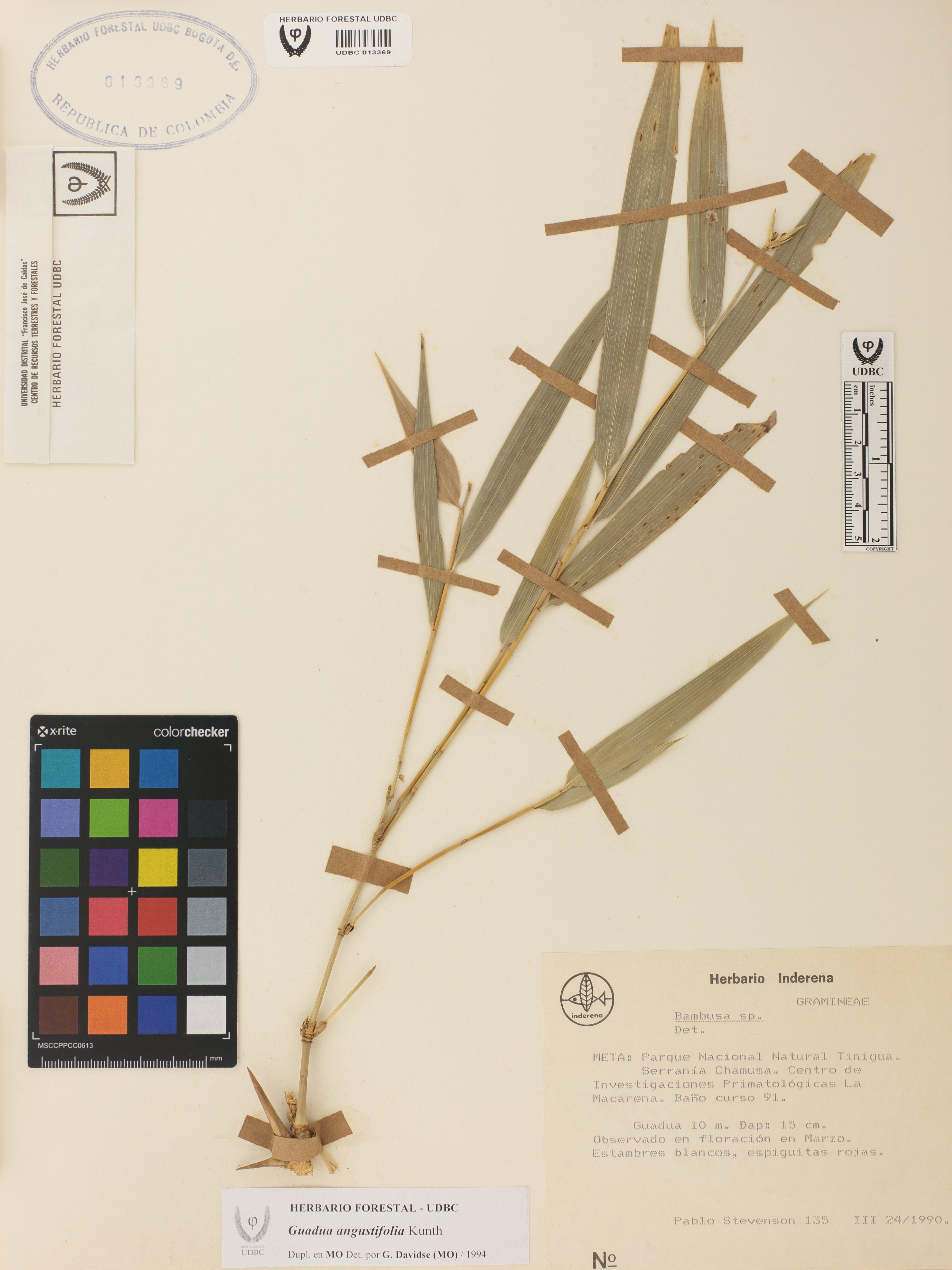 Fotografía del ejemplar Stevenson, P. 135, determinado como Guadua angustifolia en el año 1994