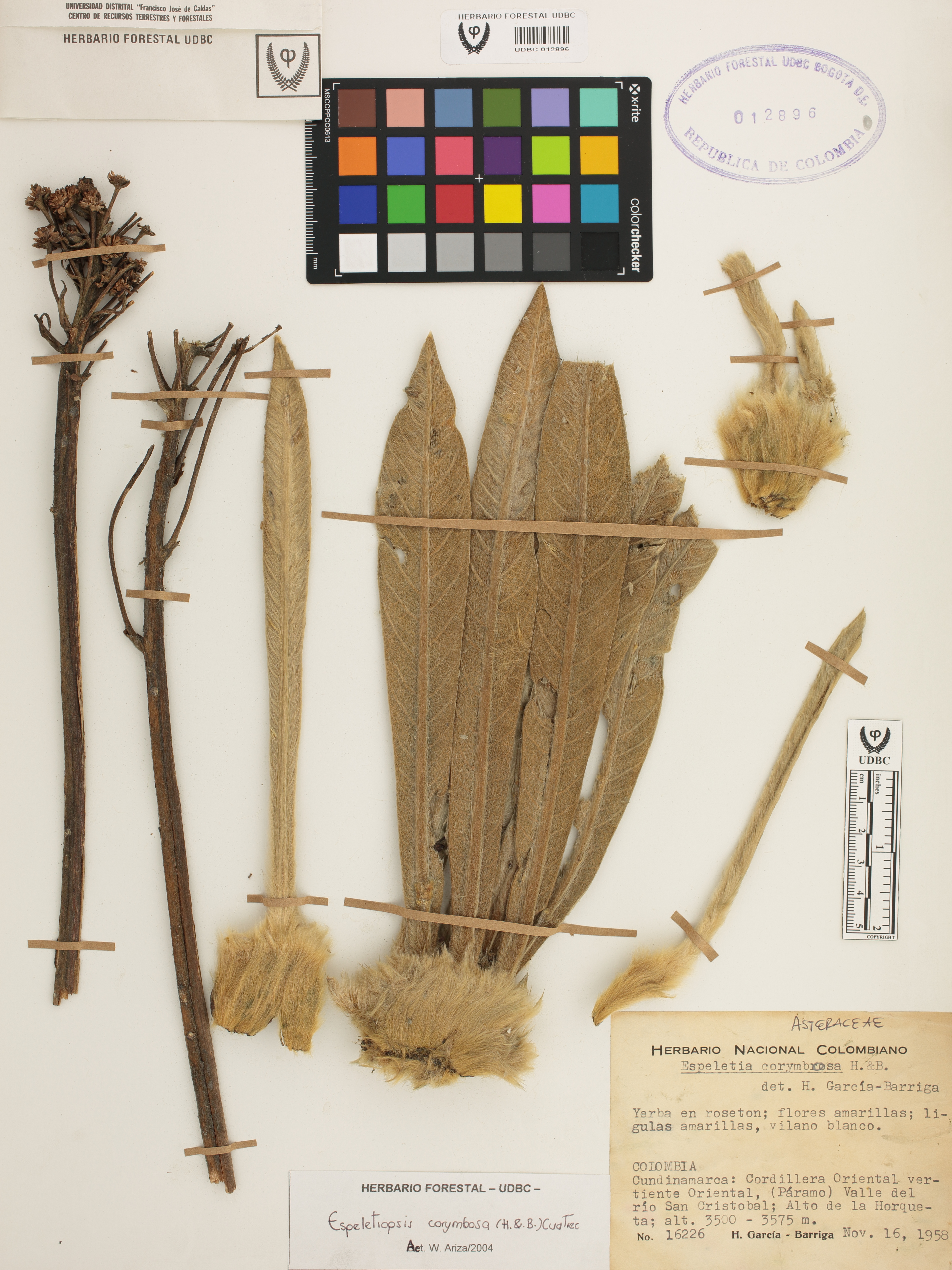 | dc.description | Fotografía del ejemplar García-B., H. 16226, determinado como Espeletiopsis corymbosa en el año 2004 | |