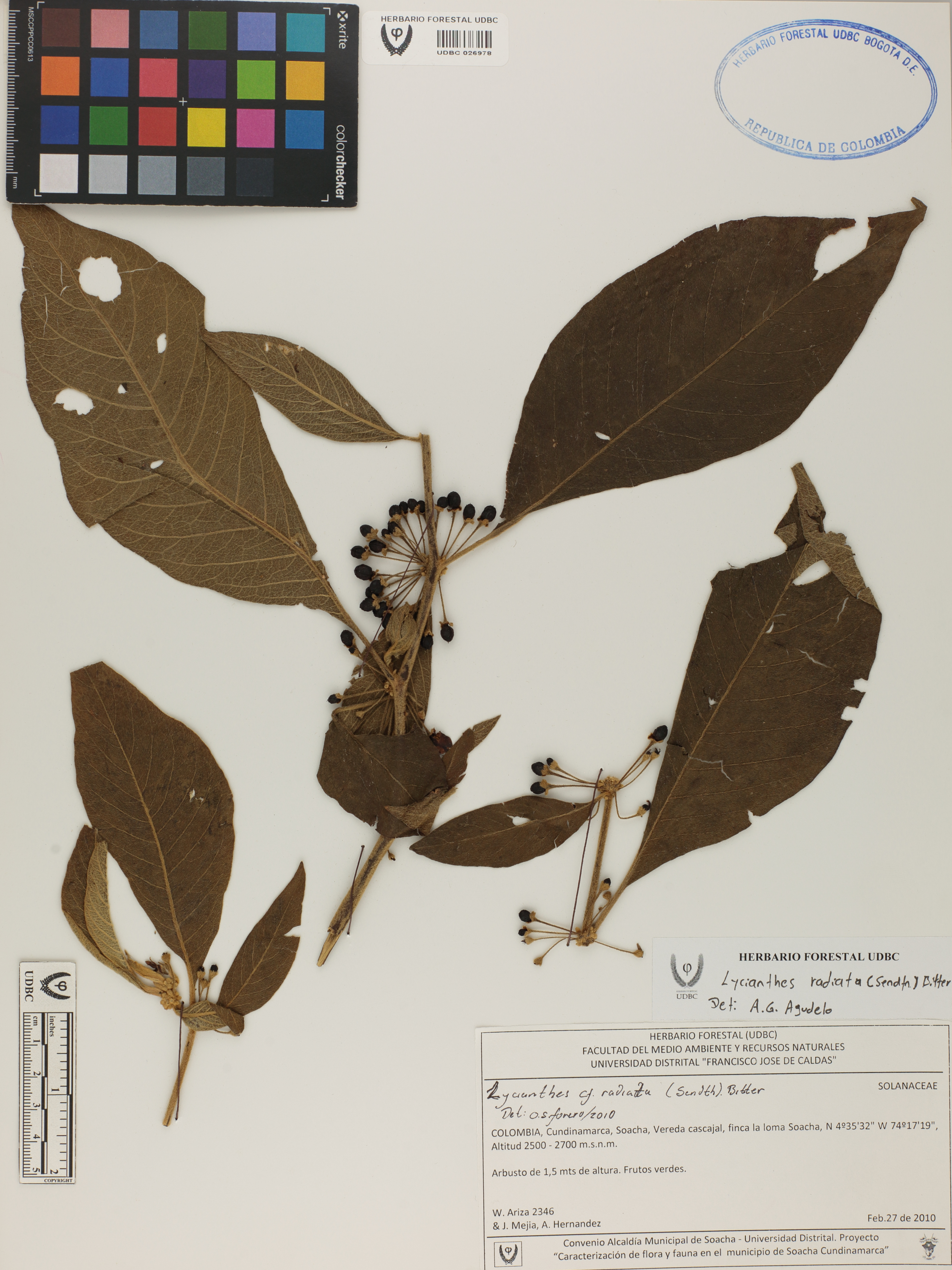 Fotografía del ejemplar Ariza, W. 2346, determinado como Lycianthes radiata
