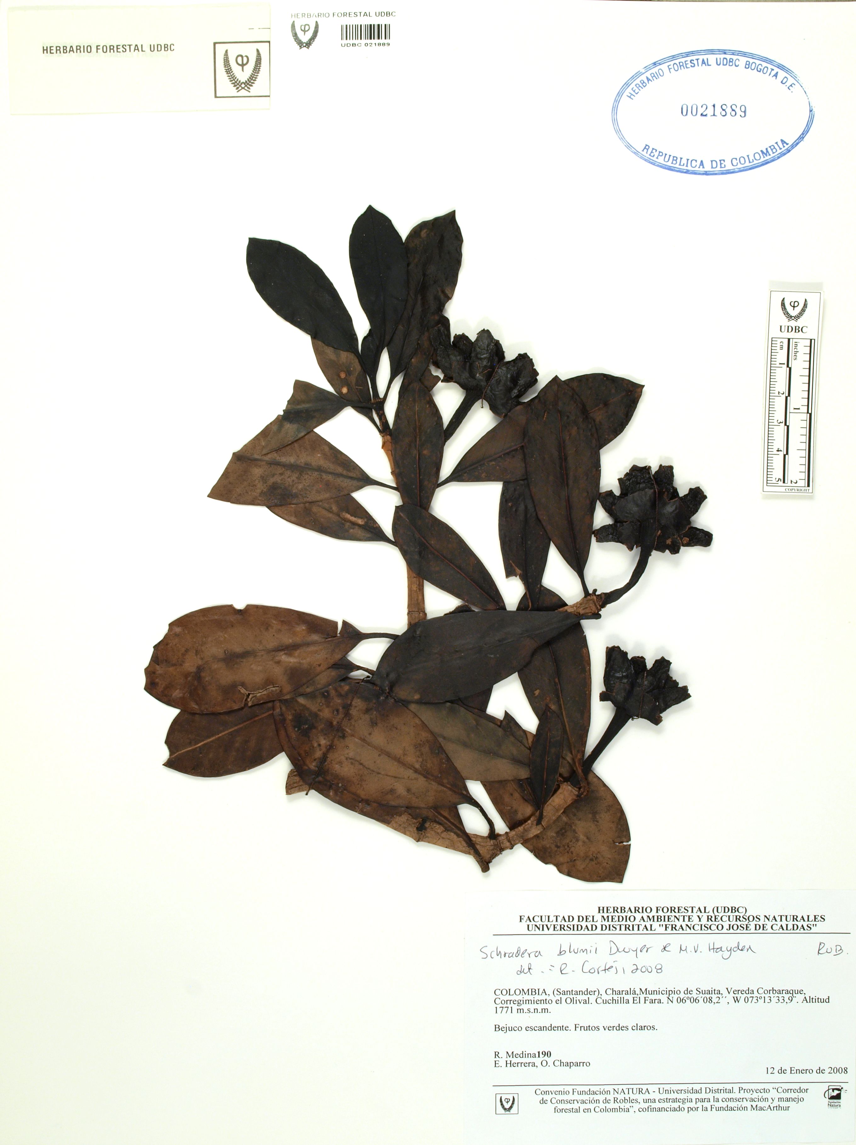Fotografía del ejemplar Medina, R. 190, determinado como Schradera blumii en el año 2008
