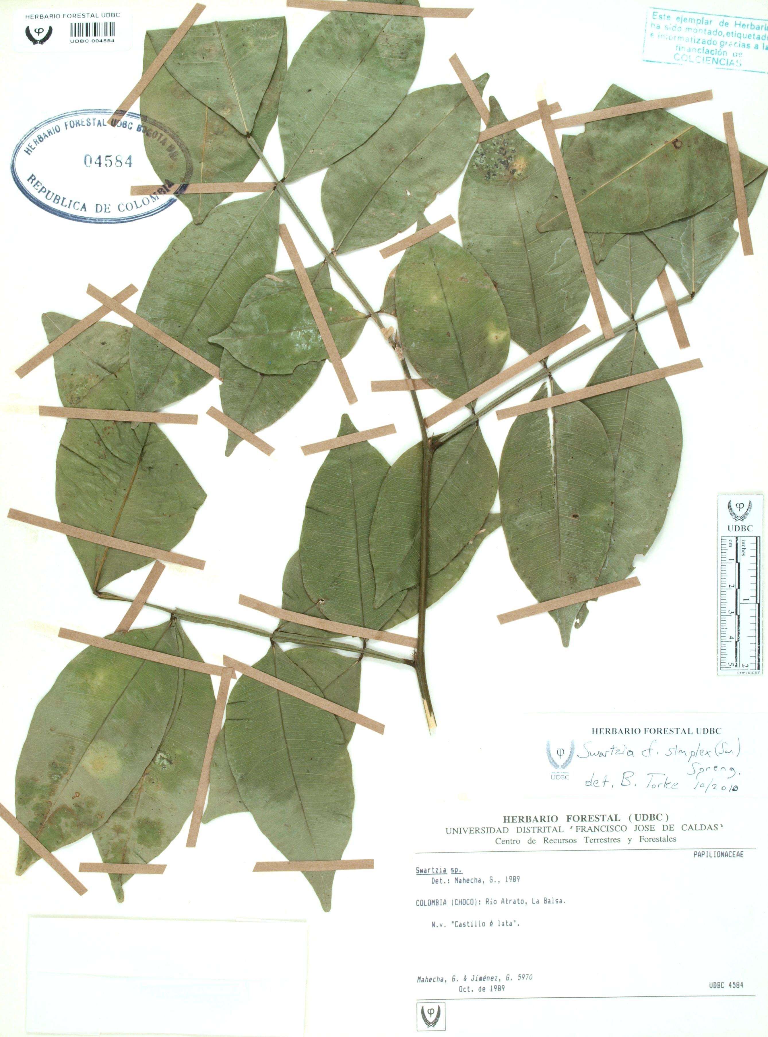 Fotografía del ejemplar Mahecha, G. 5970, determinado como Swartzia simplex en el año 2010