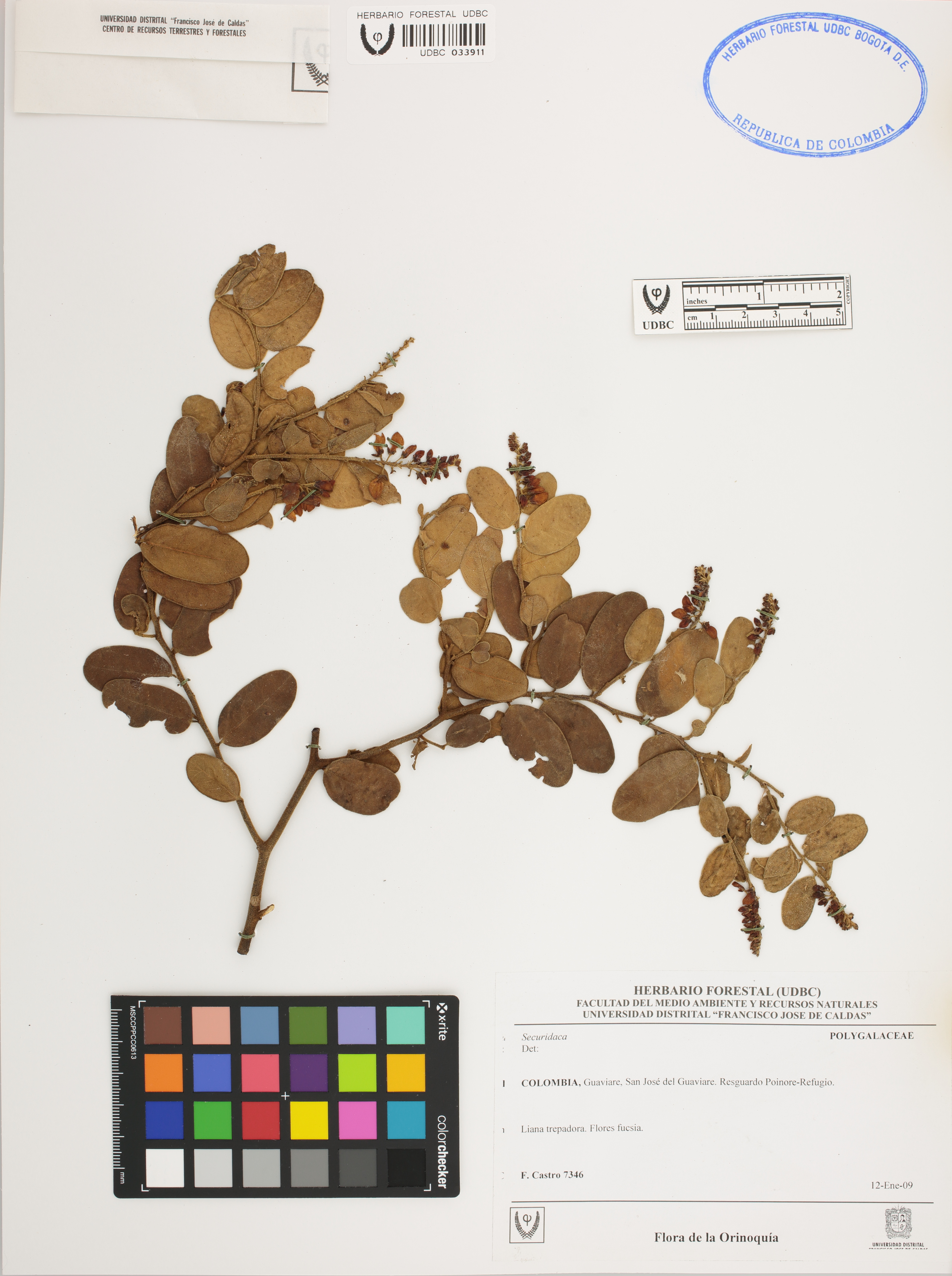 Fotografía del ejemplar Castro, F. 7346, determinado como Securidaca sp.