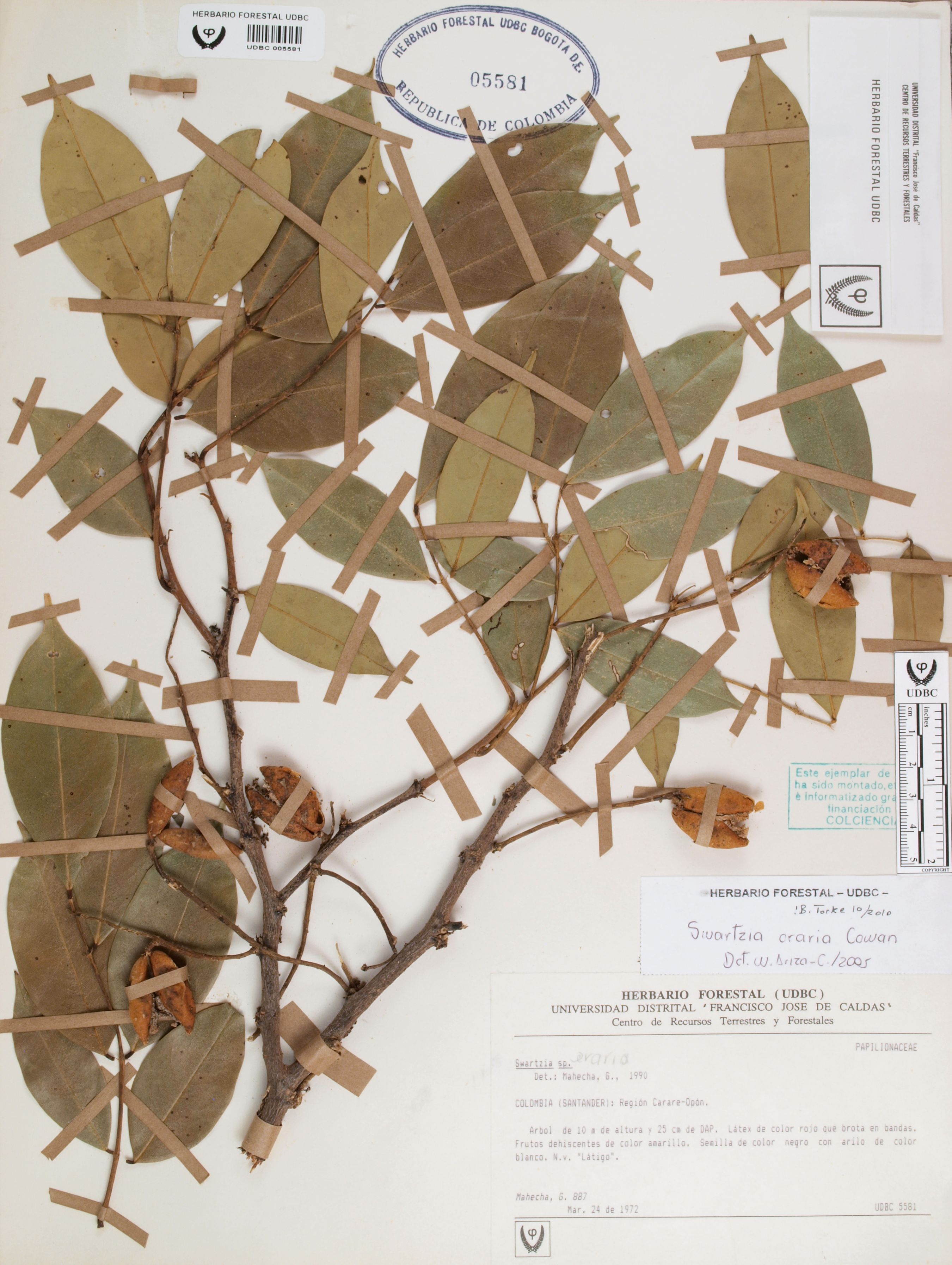 Fotografía del ejemplar Mahecha, G. 887, determinado como Swartzia oraria en el año 2010