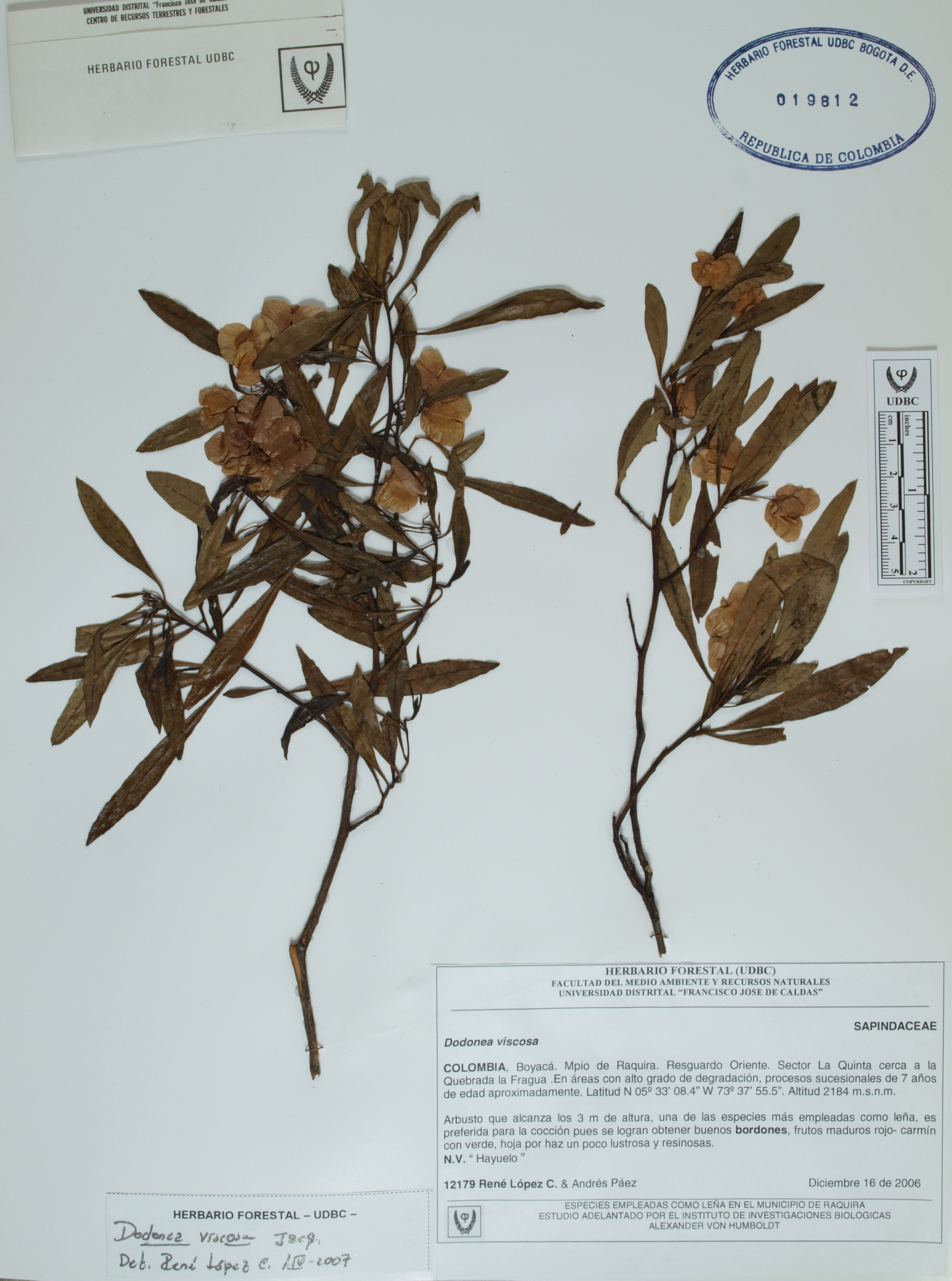| dc.description | Fotografía del ejemplar López, R. 12179, determinado como Dodonaea viscosa en el año 2007 | |