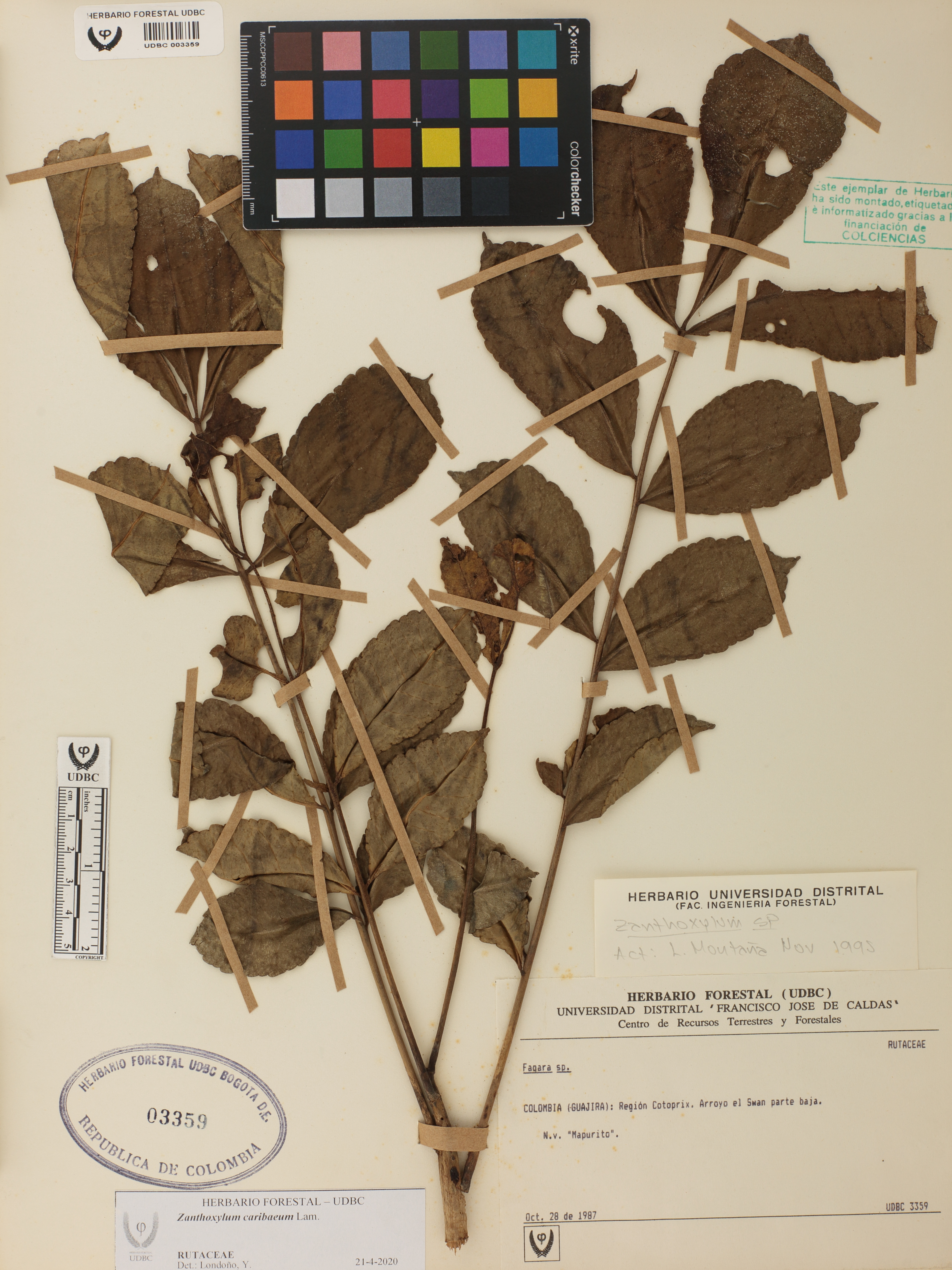Fotografía del ejemplar SD, determinado como Zanthoxylum caribaeum en el año 2020
