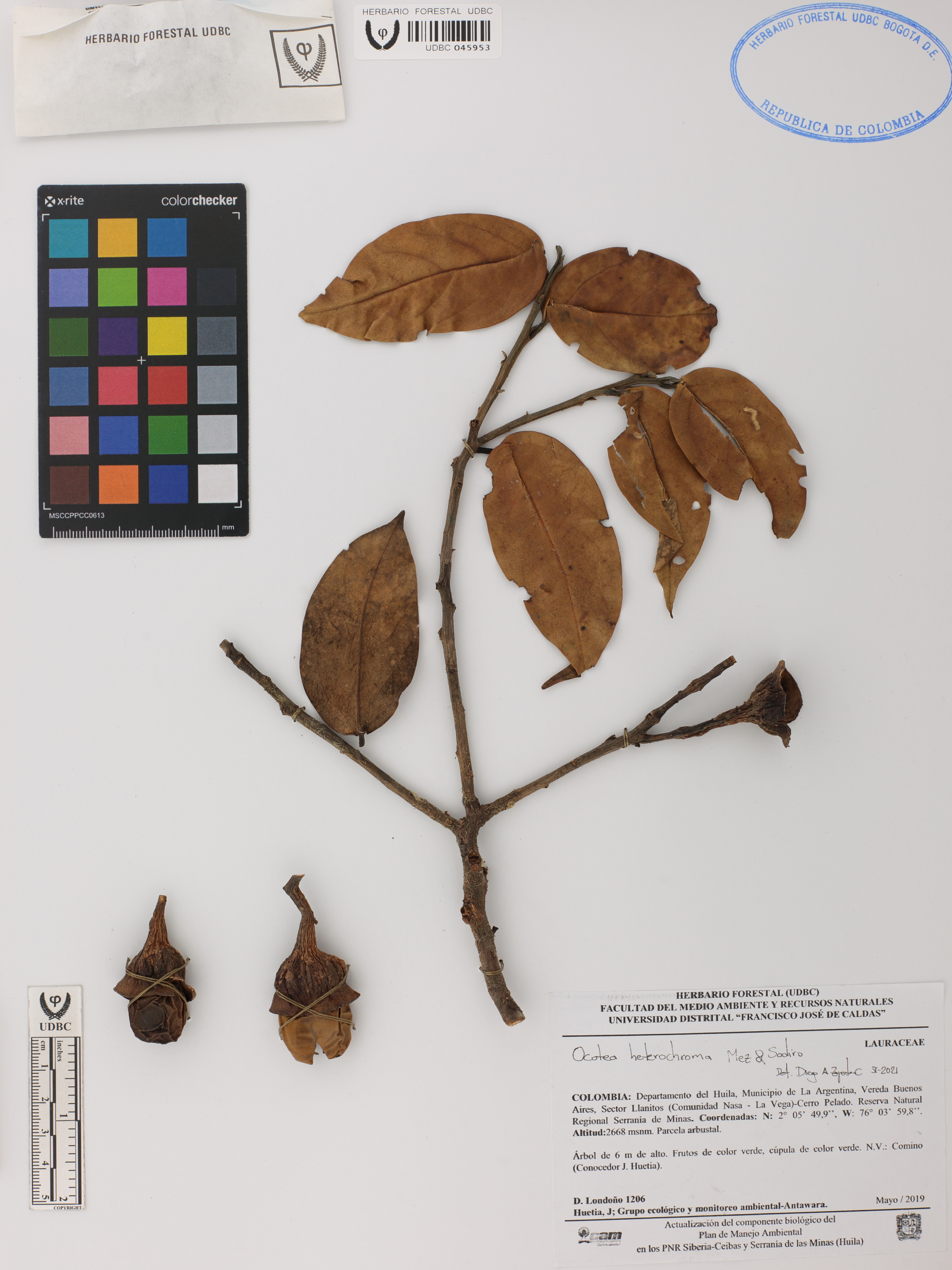 Fotografía del ejemplar Londoño, D. 1206, determinado como Ocotea heterochroma en el año 2021
