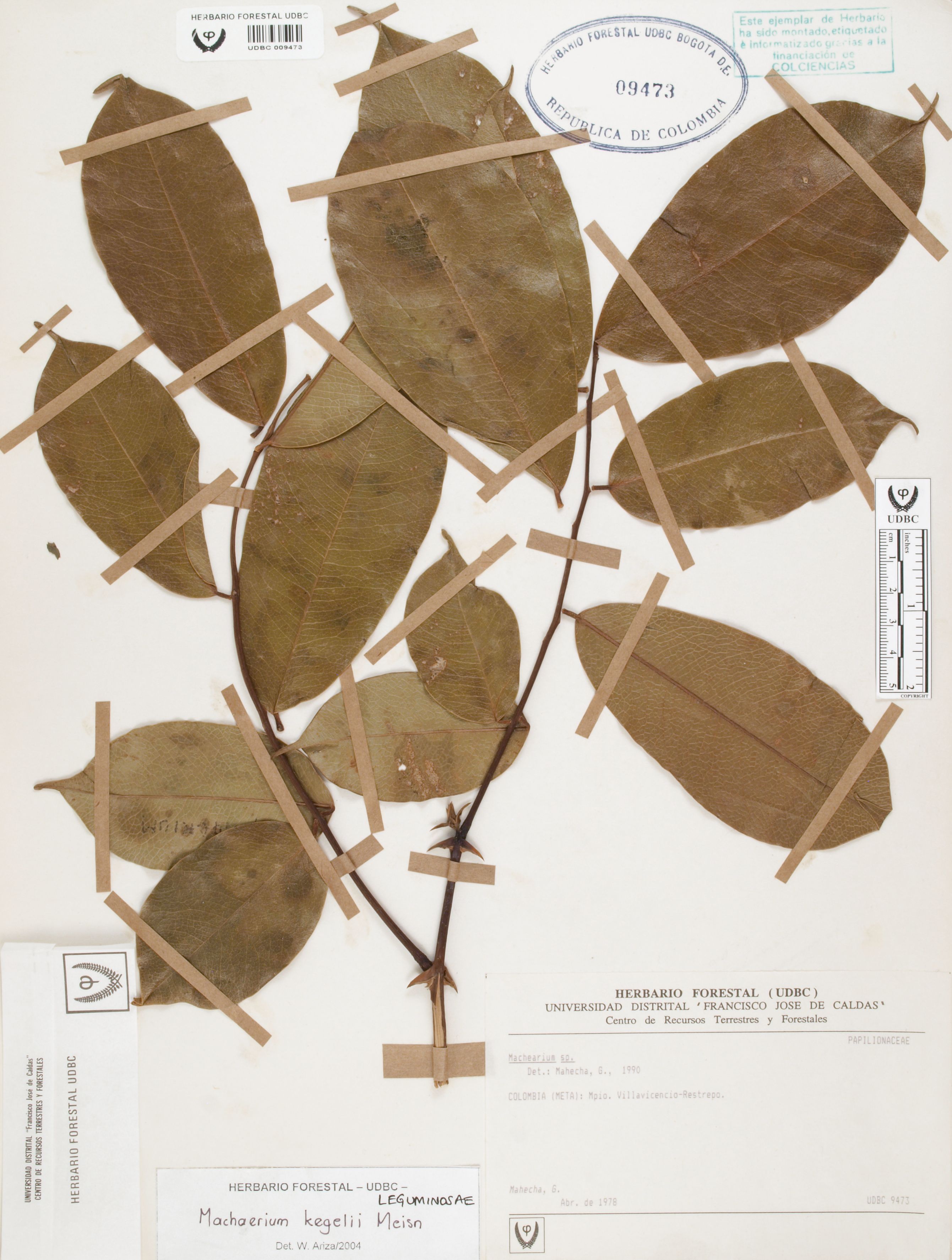 Fotografía del ejemplar Mahecha, G., determinado como Machaerium kegelii en el año 2004