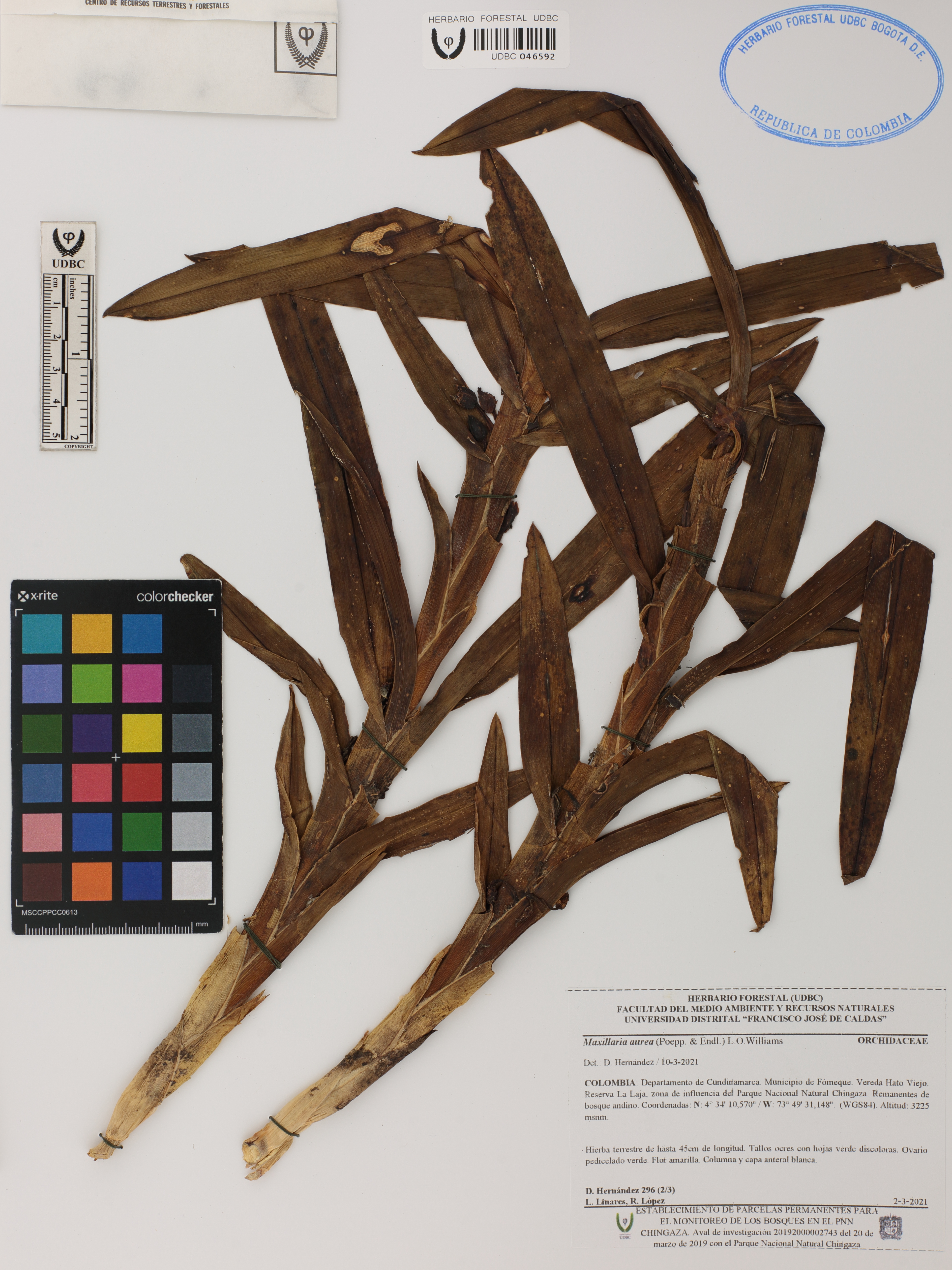 Fotografía del ejemplar Hernández, H. 296, determinado como Maxillaria aurea en el año 2021